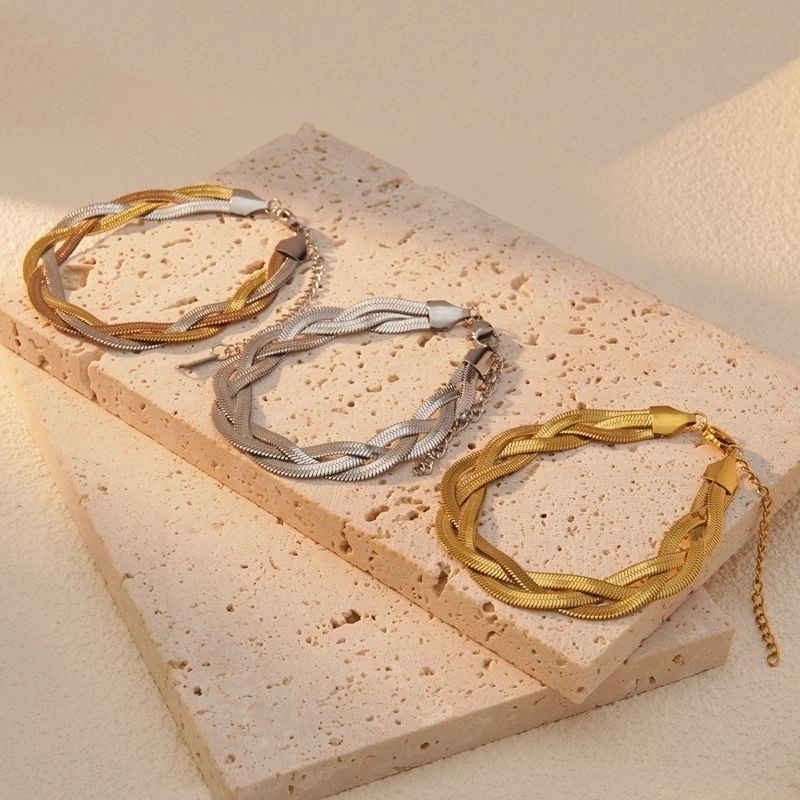 Hip-Hop Cool Style Simple 304 Stainless Steel 18K Gold Plated Bracelets In Bulk