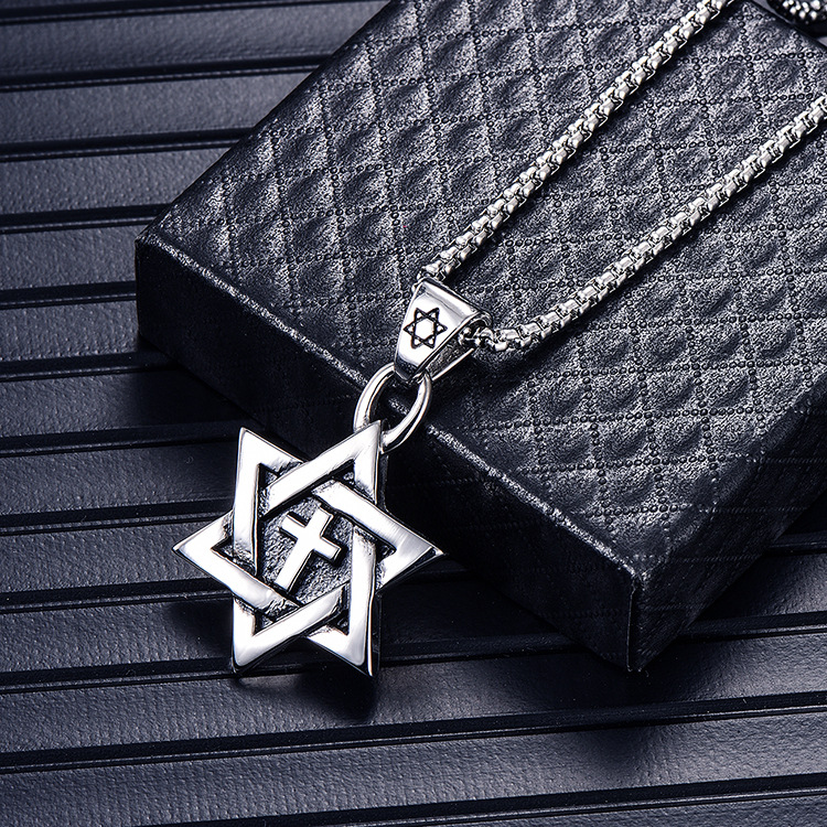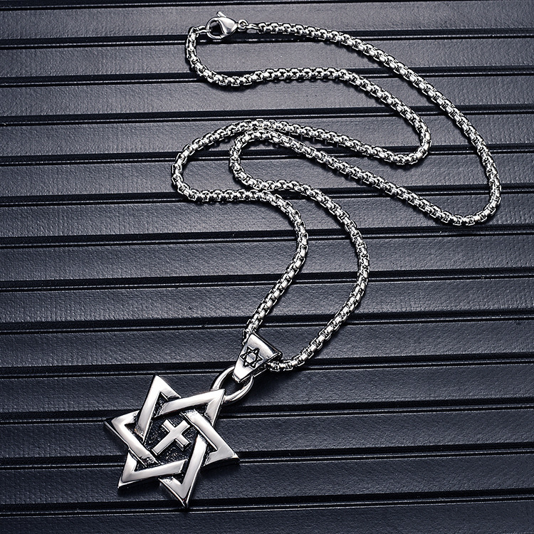 Hip-Hop Hexagram Titanium Steel Men'S Charms Pendant Necklace