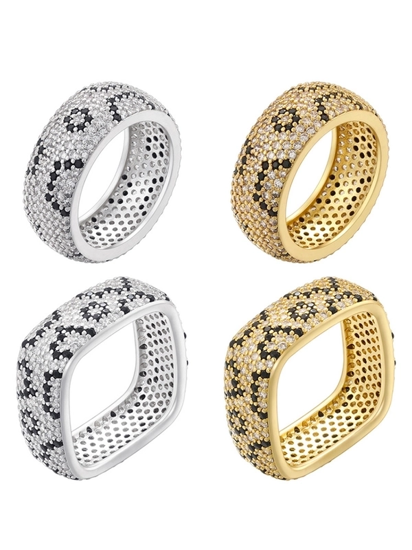 Hip-Hop Retro Round Square Copper Inlay 18K Gold Plated Zircon Open Rings