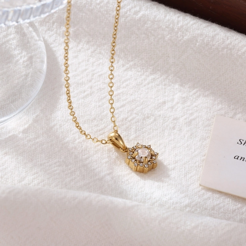 Hot Pendant Rhinestone Big Diamond Necklace Female Light Luxury Temperament Personality Creative Titanium Steel Clavicle Chain Female
