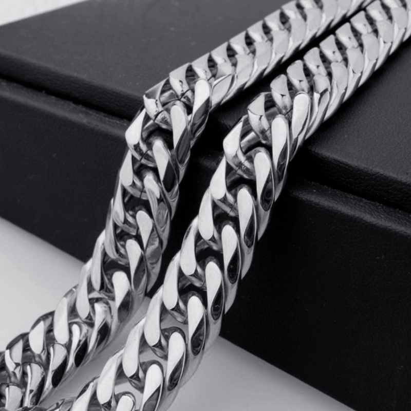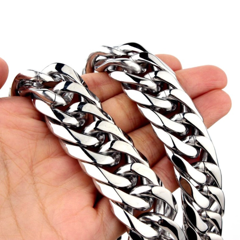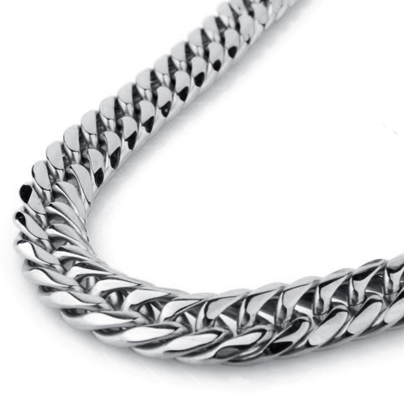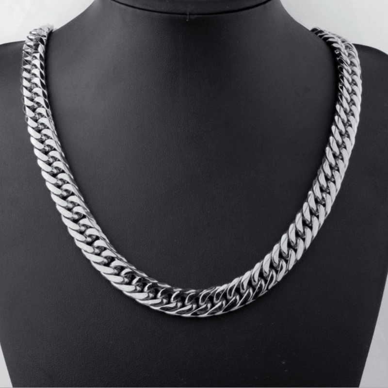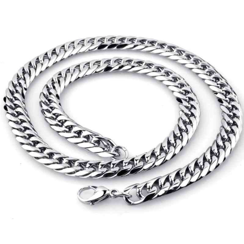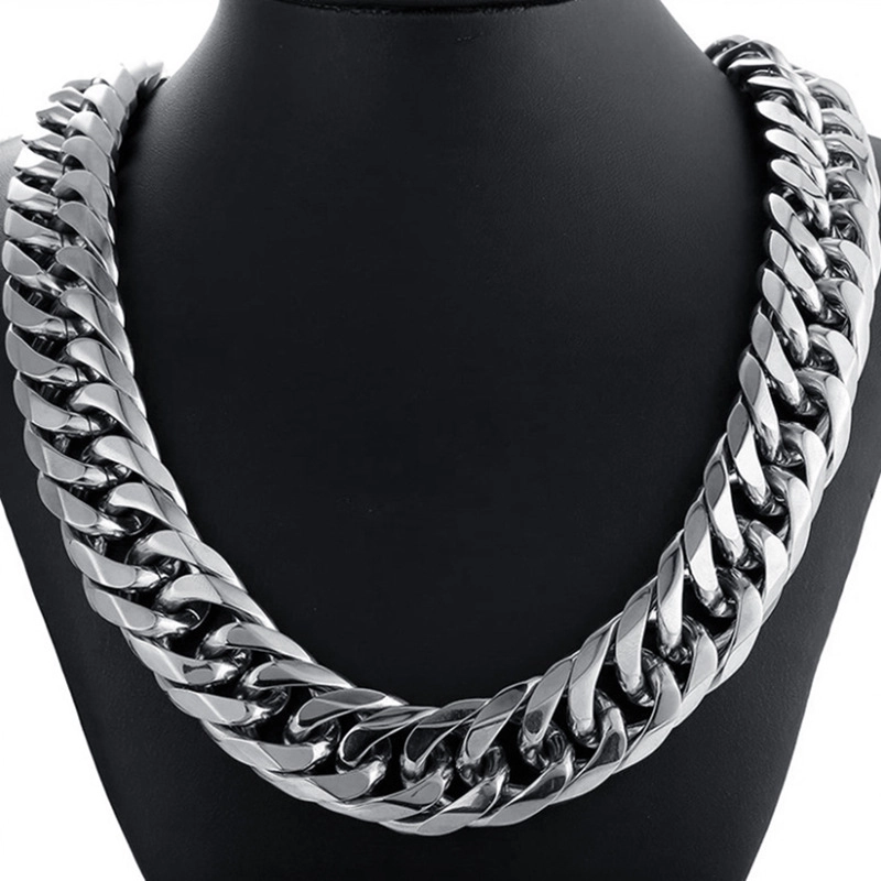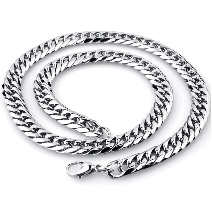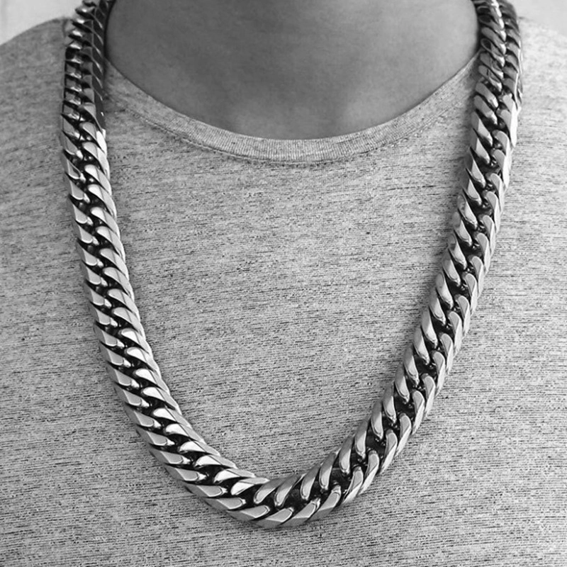 Hot Sale Men'S Titanium Steel Stainless Steel Thick Chain Double Buckle Cuban Chain Six-Sided Mill Multi-Layer Chain Punk Style Necklace