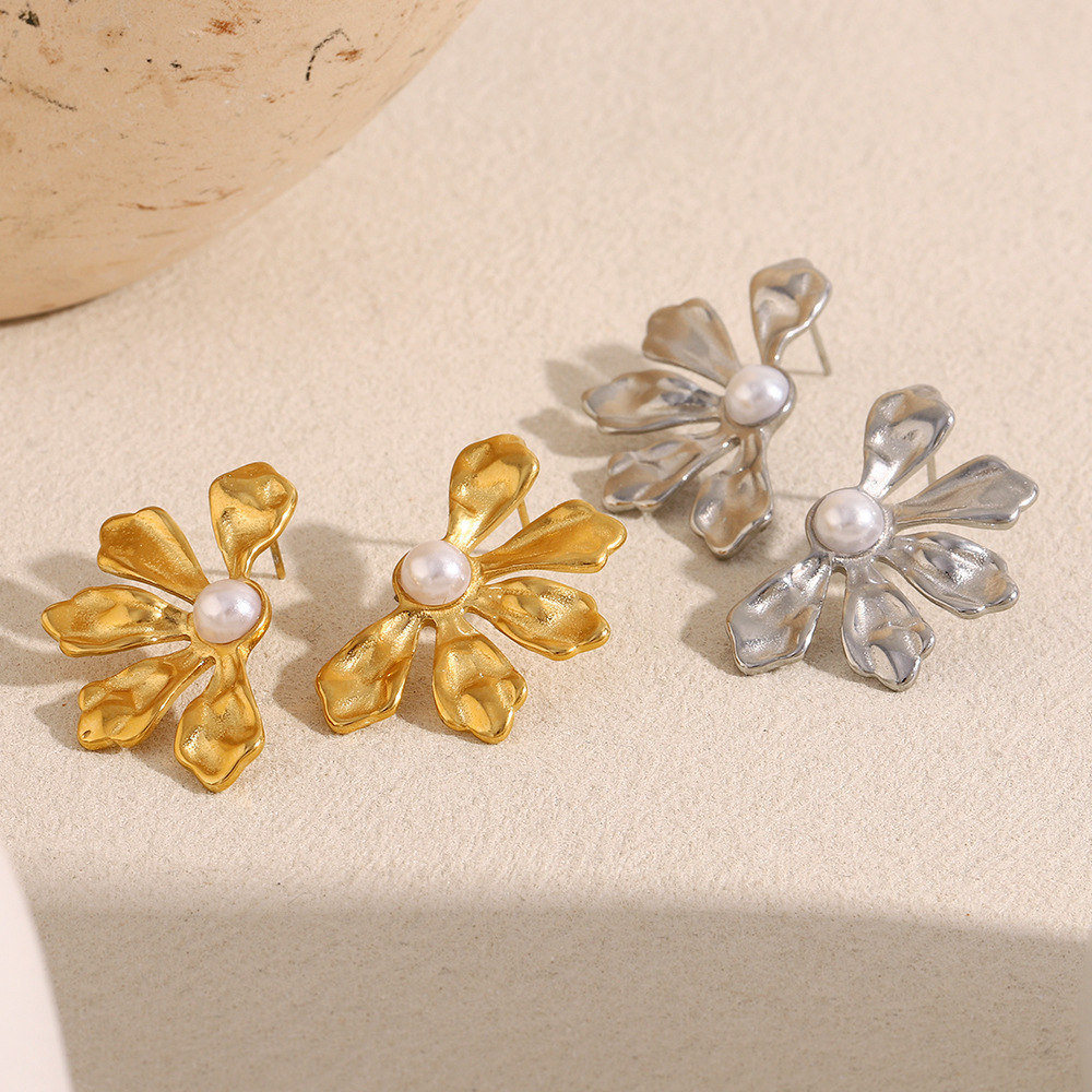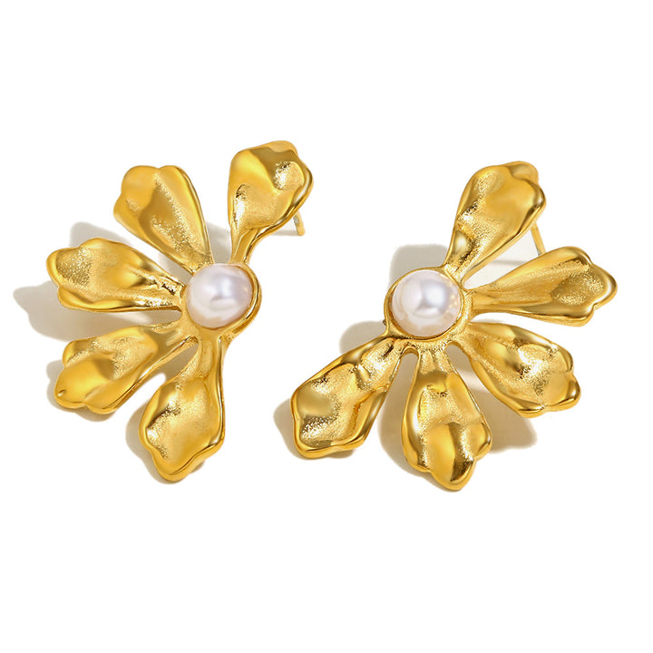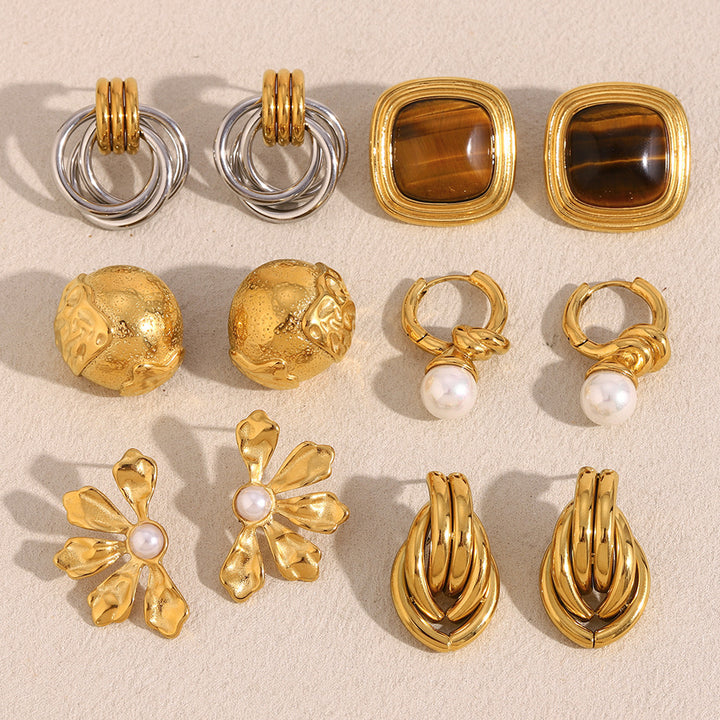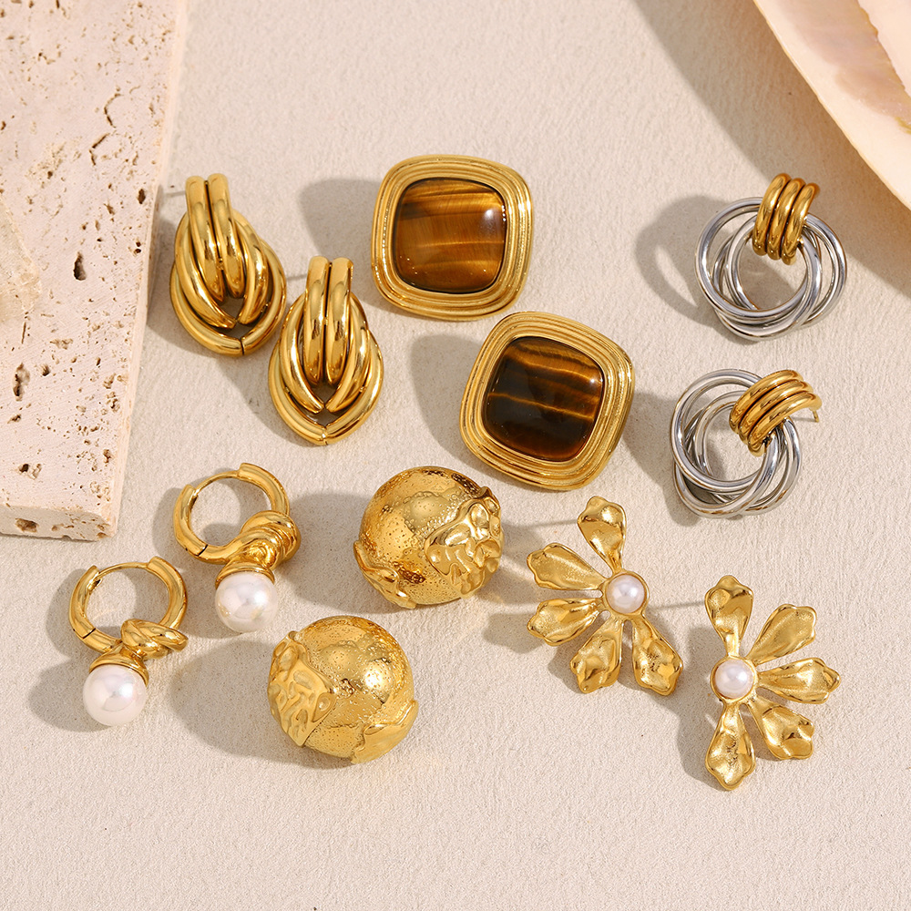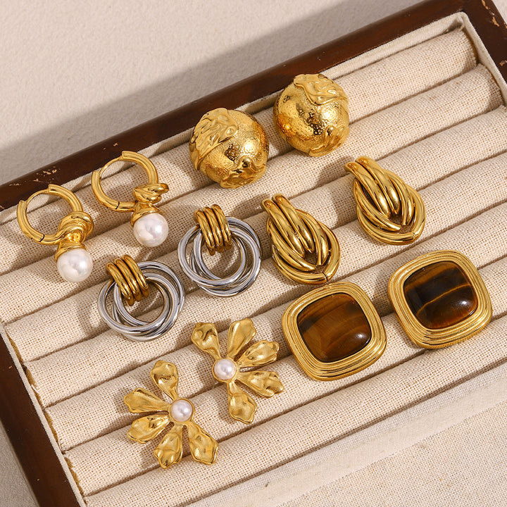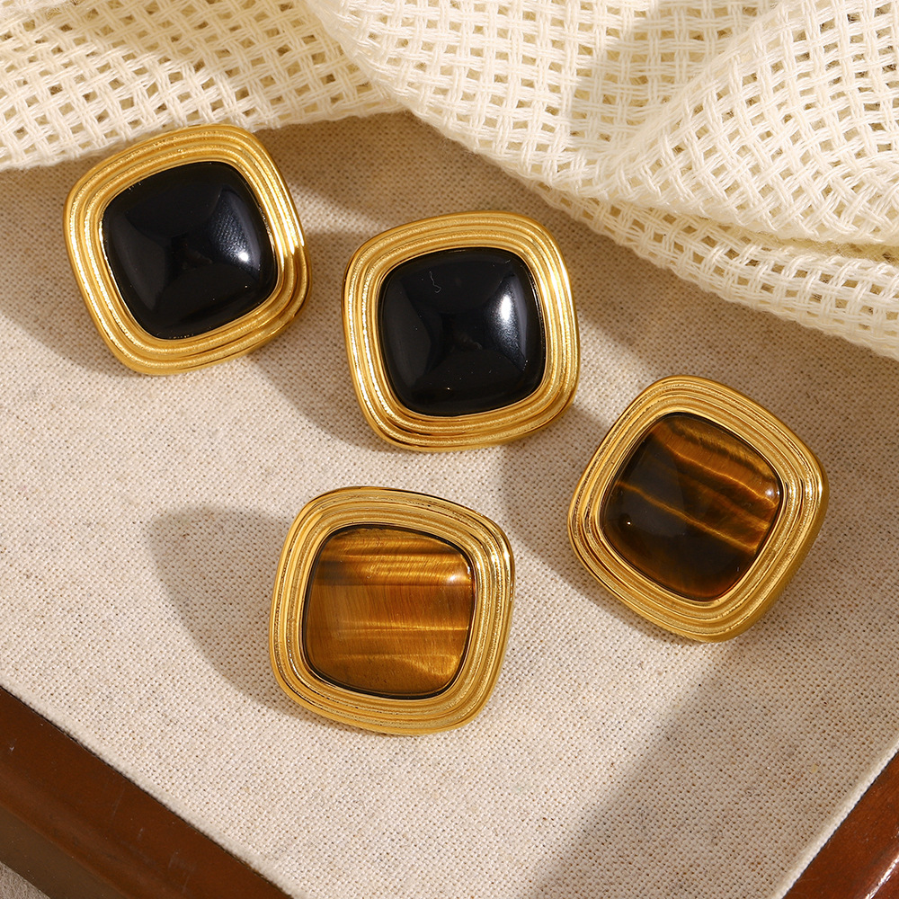 Hot Selling Second-Hand Niche Stainless Steel 18K Gold Plated Flower Pearl Pattern Square Black Jade Earrings For Women