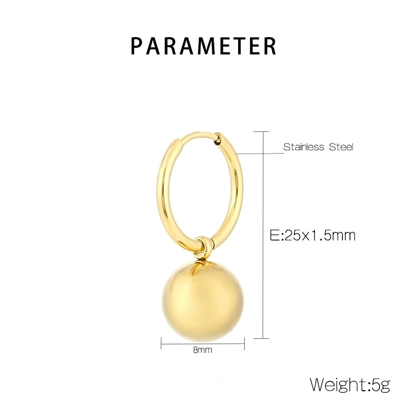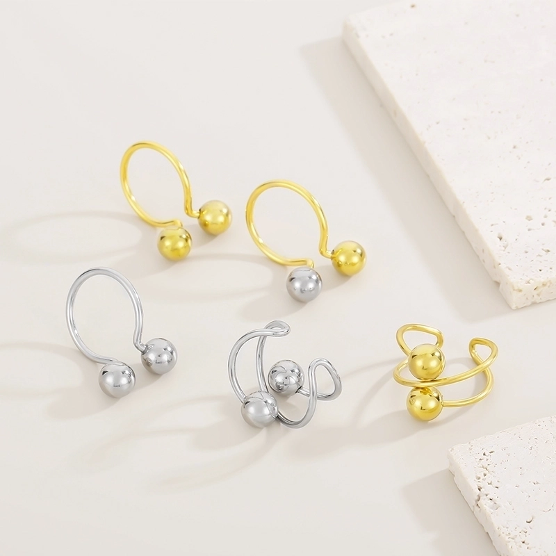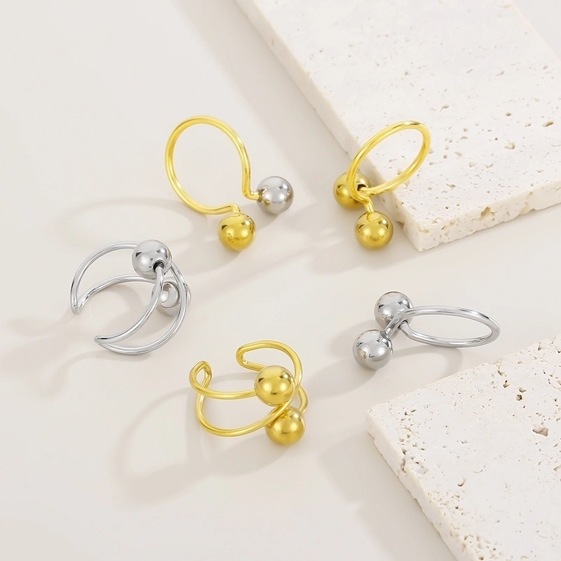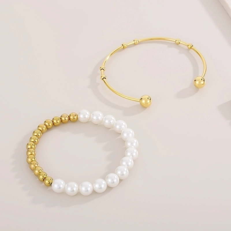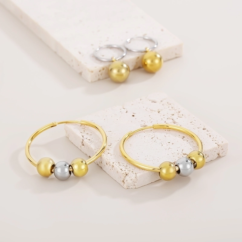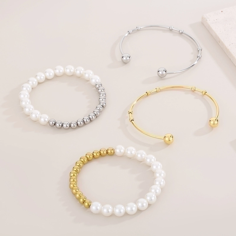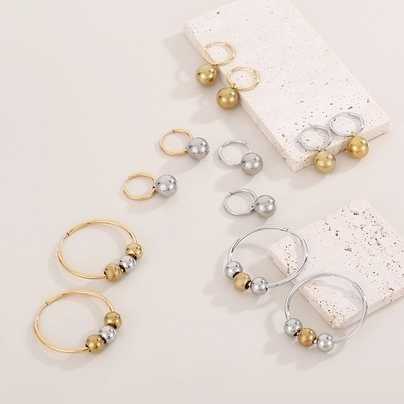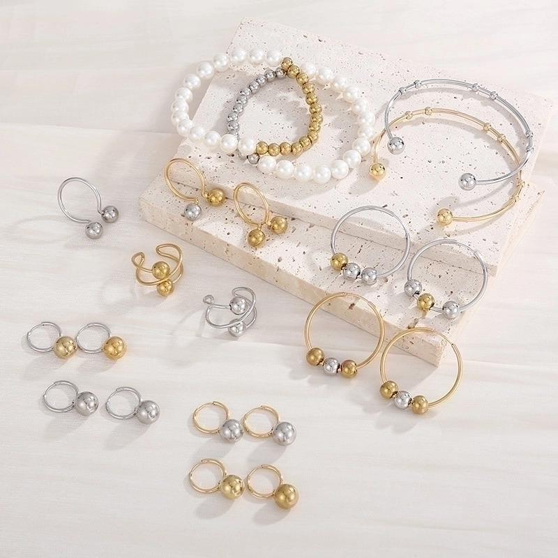 Ig Style Minimalist Round Titanium Steel 18K Gold Plated Pearl Plating Rings Bracelets Earrings