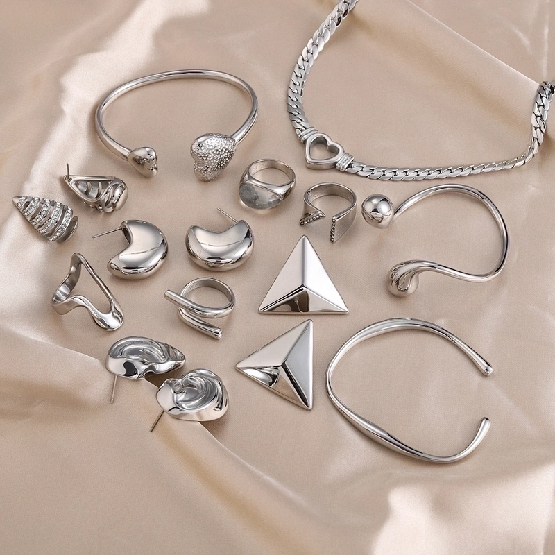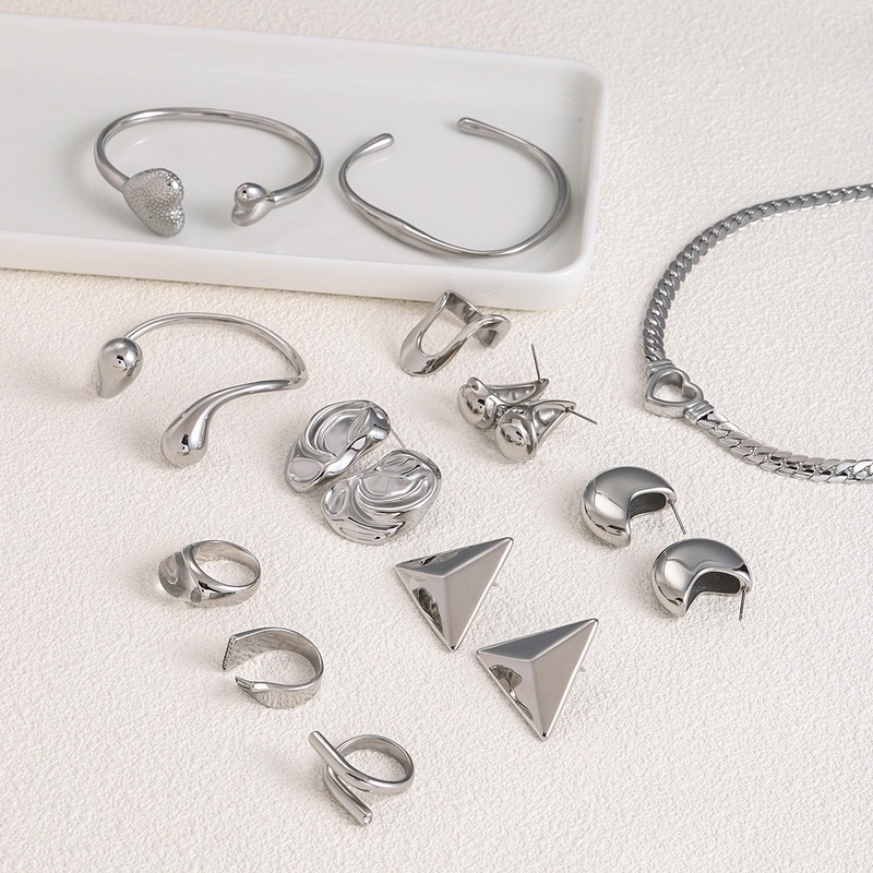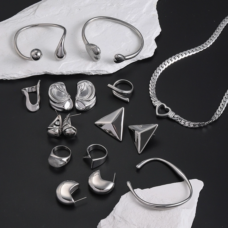 Ig Style Minimalist Solid Color 304 Stainless Steel Rings Earrings Necklace