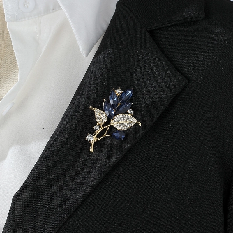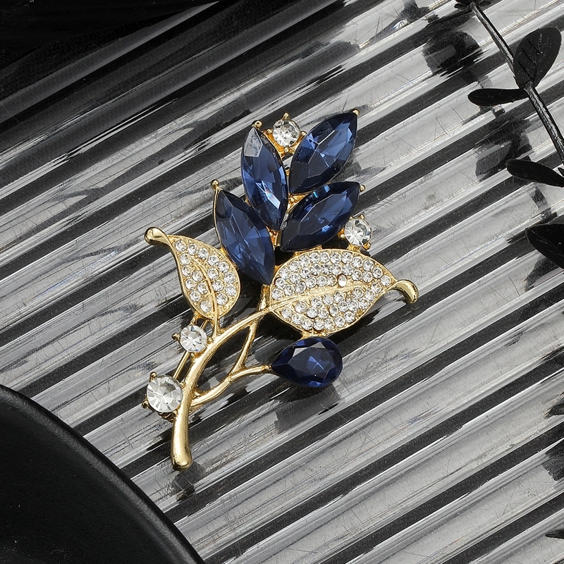 Ig Style Pin Leaves Alloy Inlay Crystal Rhinestones Women'S Brooches 1 Piece