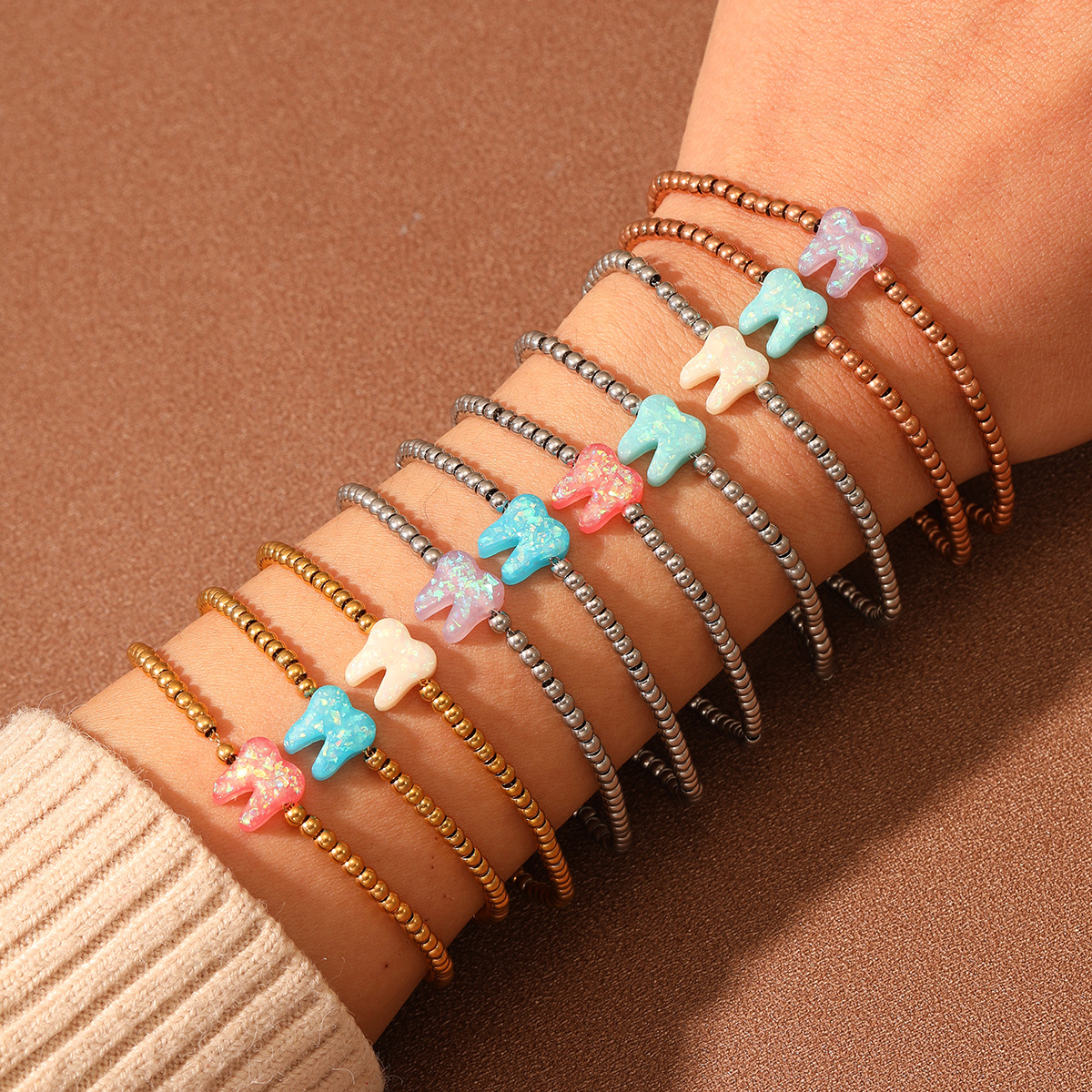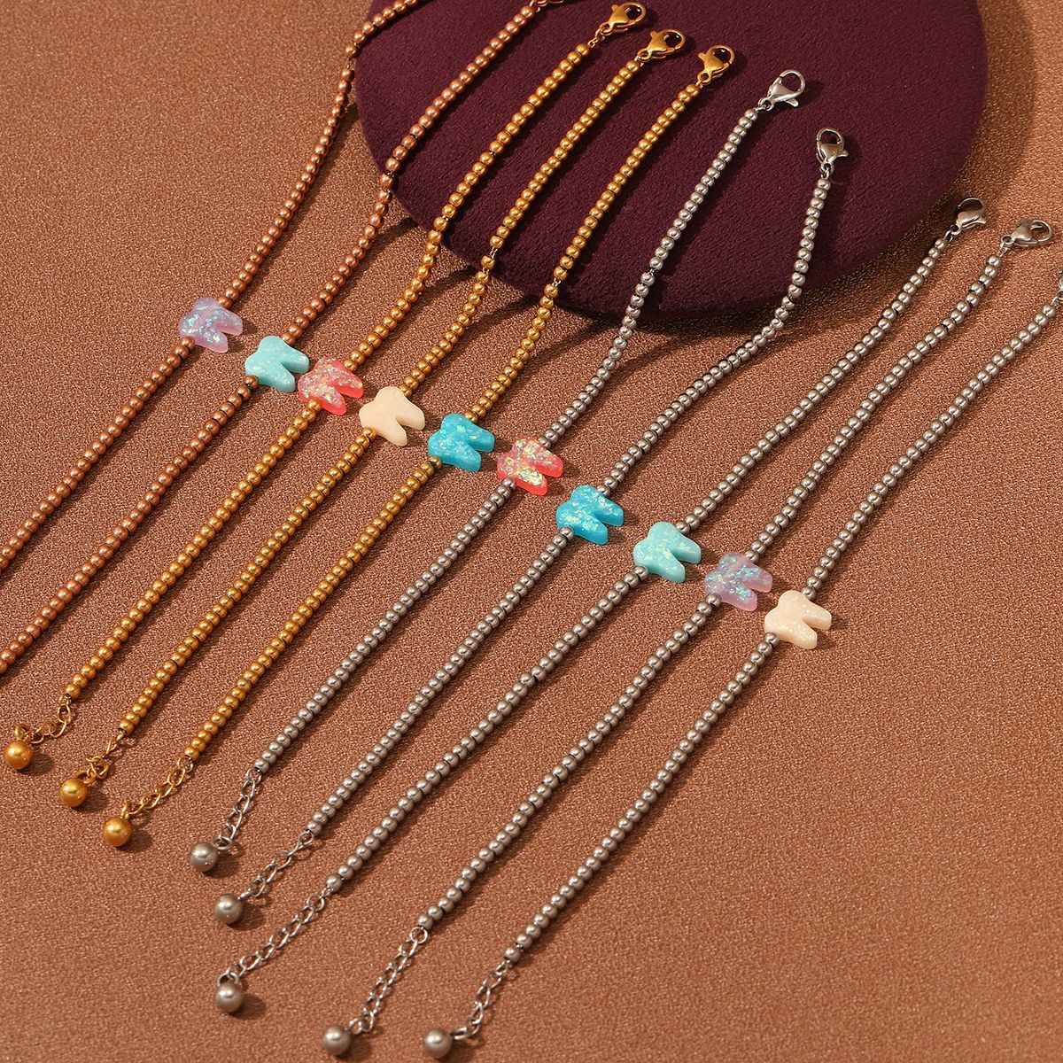 Ins European And American New Colorful Cute Tooth Shape Titanium Steel Bracelet Niche Design Personality All-Match 18K Bracelet