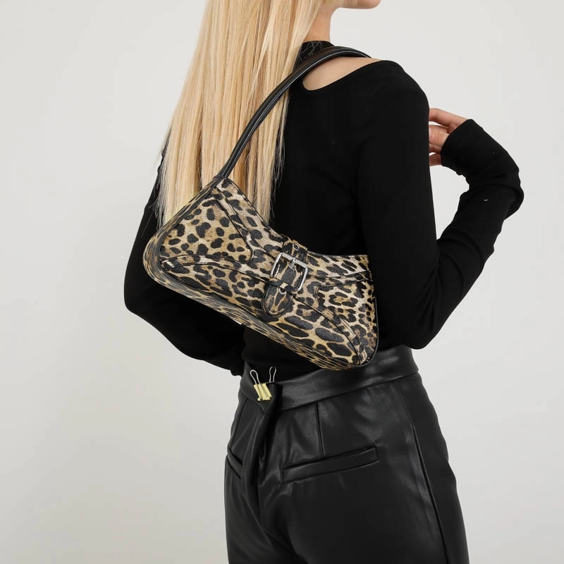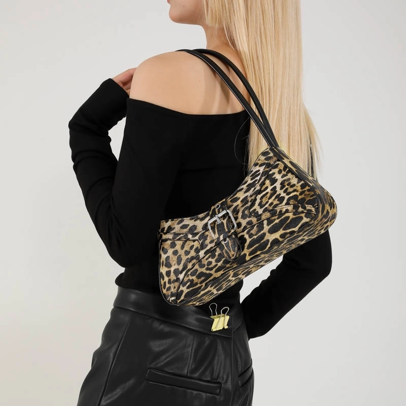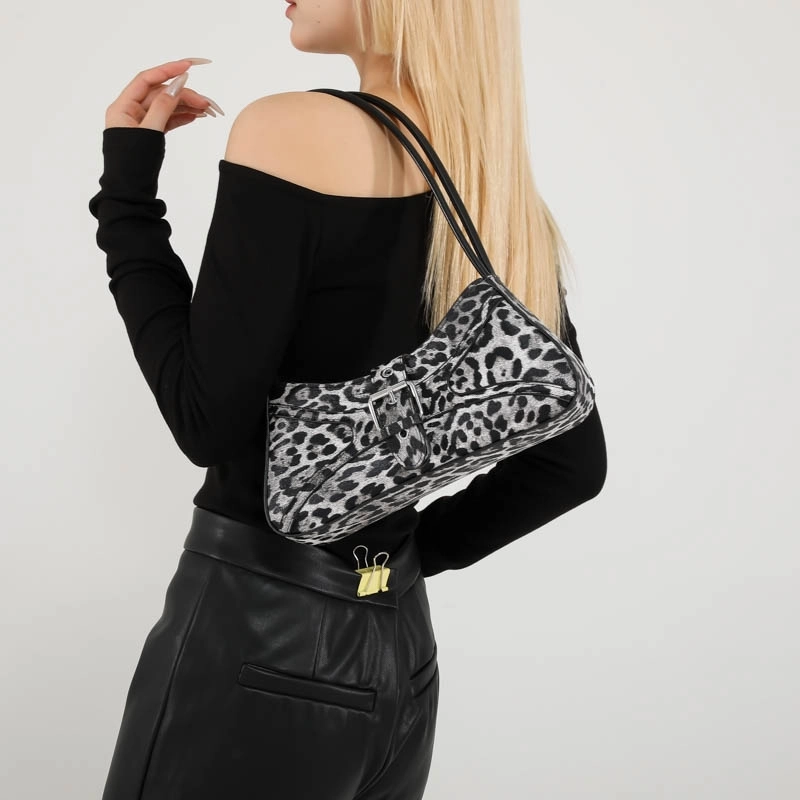 Korean Style French Stick Underarm Bag Leopard Print Fashion Shoulder Bag Trendy Unique Pu Leather Leopard Print Bag