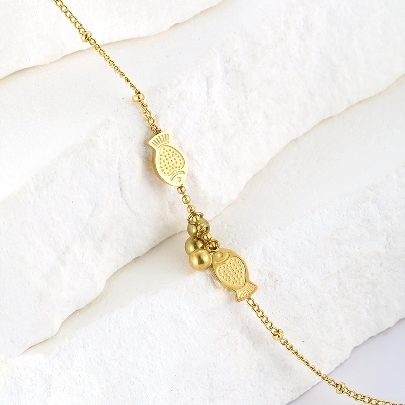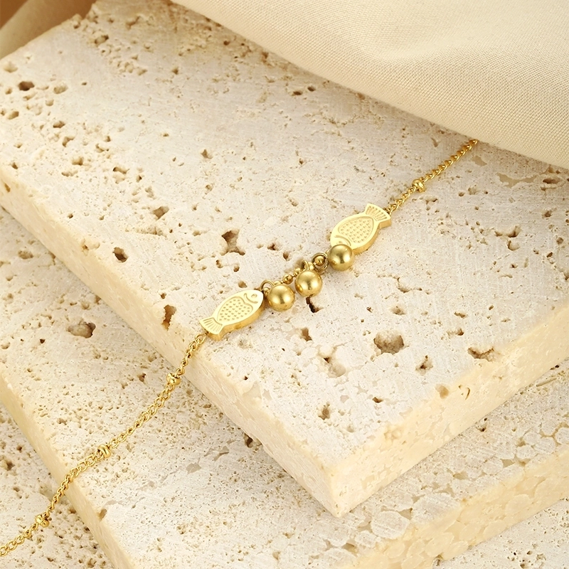 Lady Modern Style Fish 304 Stainless Steel 18K Gold Plated Bracelets In Bulk