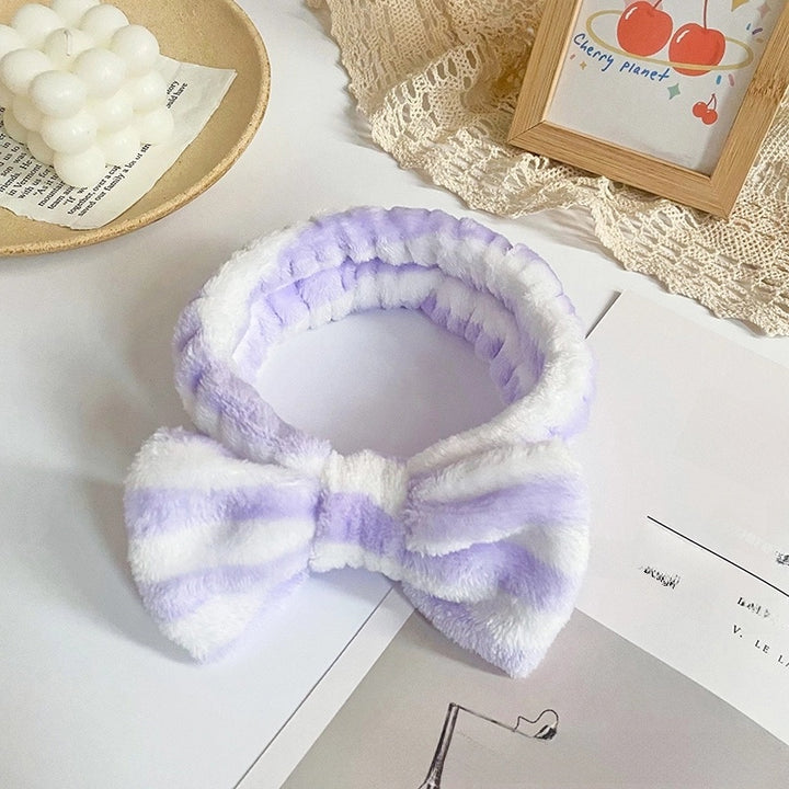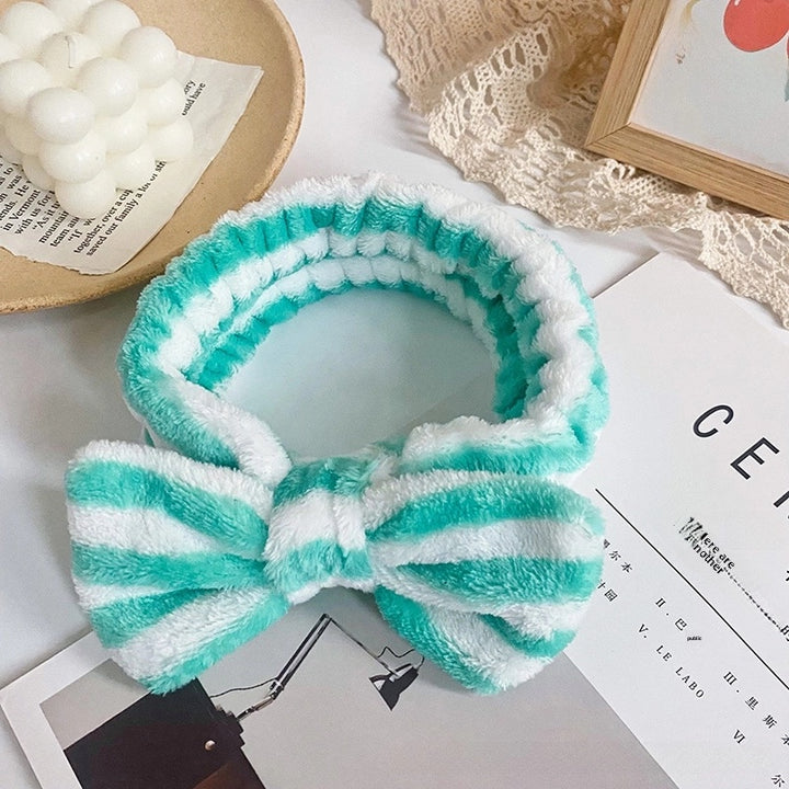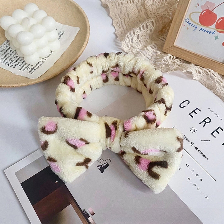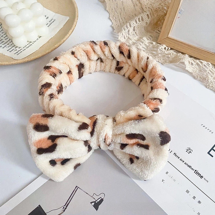 Leopard Stripe Bow Hair Band Women'S Face Washing Sports Hair Band Coral Fleece Hair Accessories