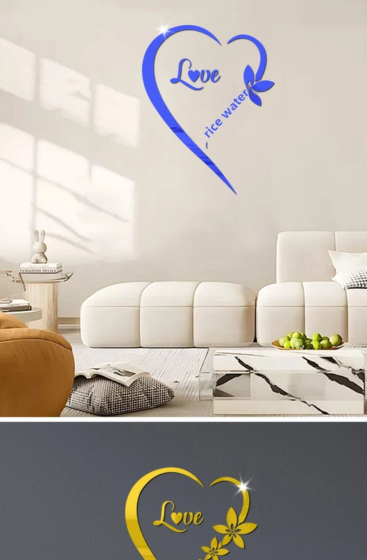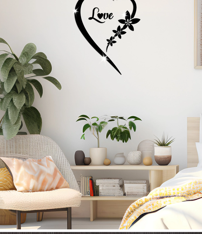 Love Acrylic Mirror Wall Stickers 3D Self-Adhesive Stickers Bedroom Living Room Tv Background Decoration