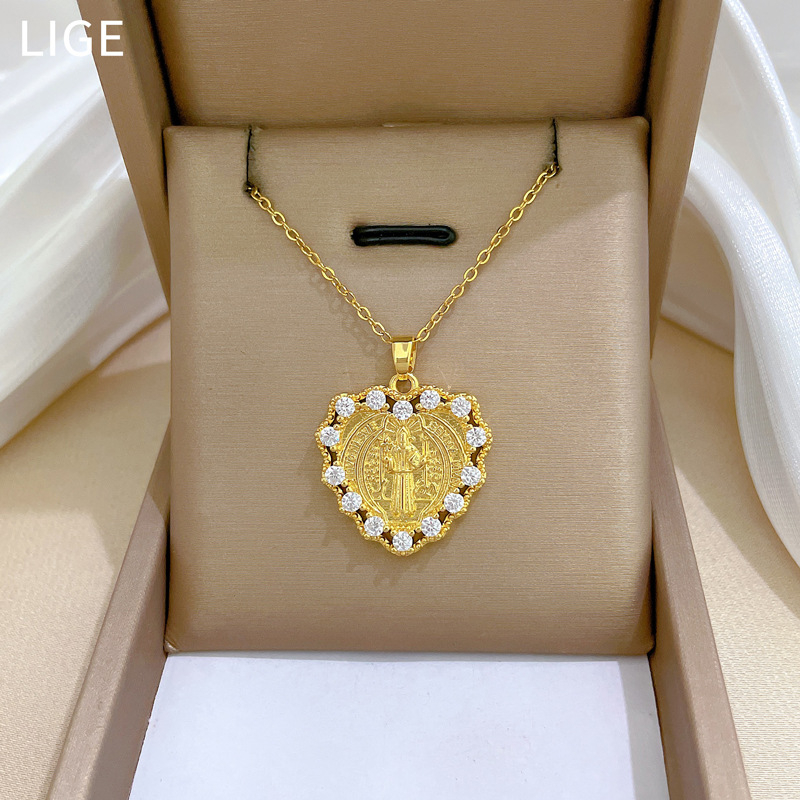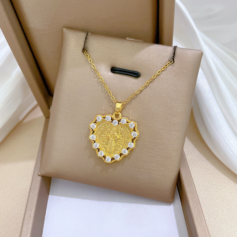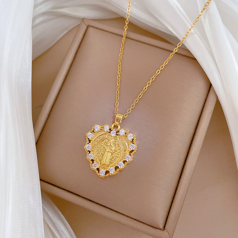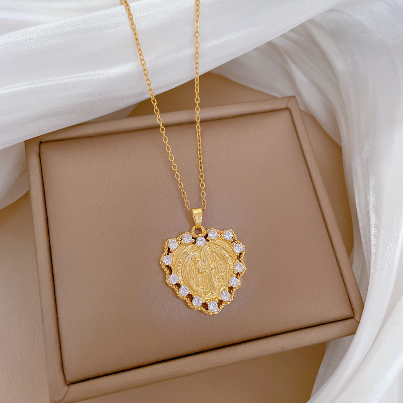 Love Portrait Full Diamond Gorgeous Full Diamond Necklace Female Versatile Clavicle Chain Titanium Steel Chain