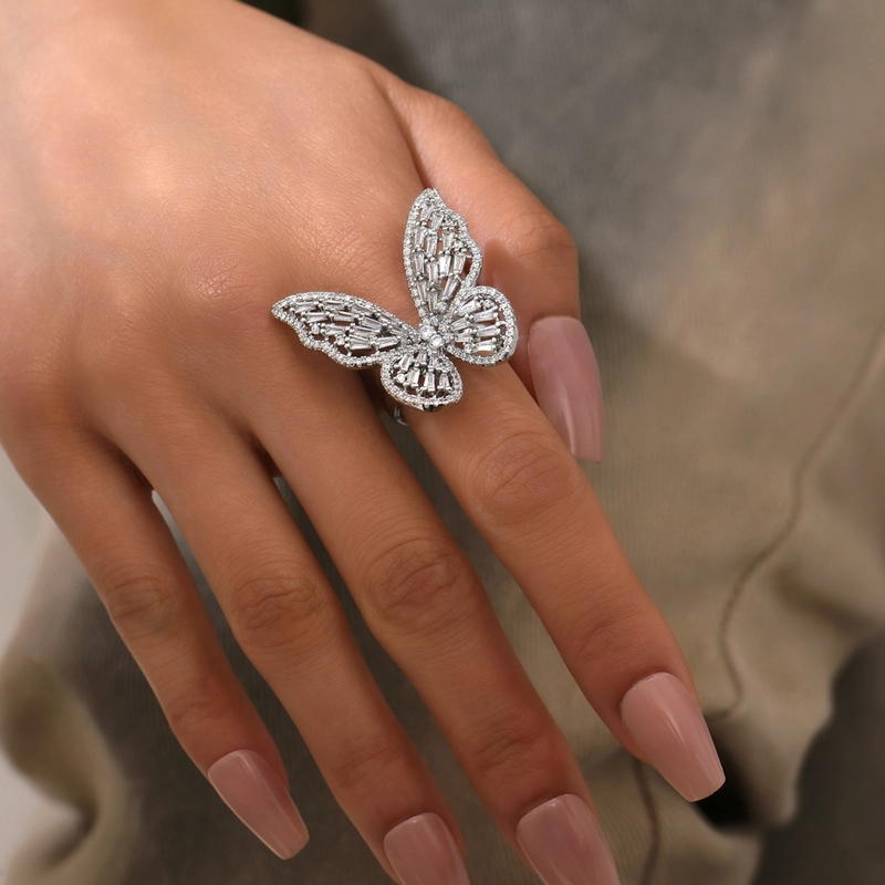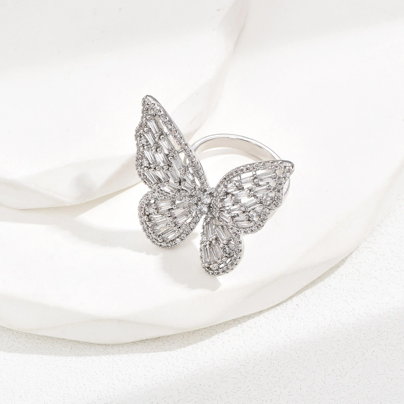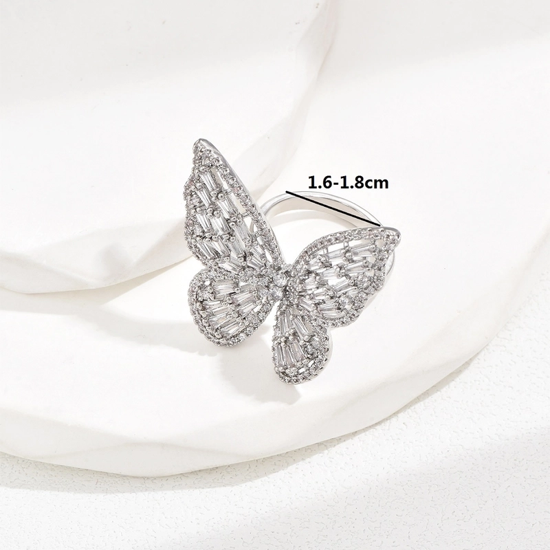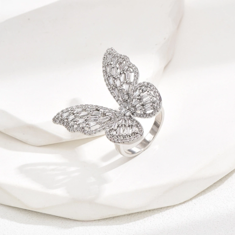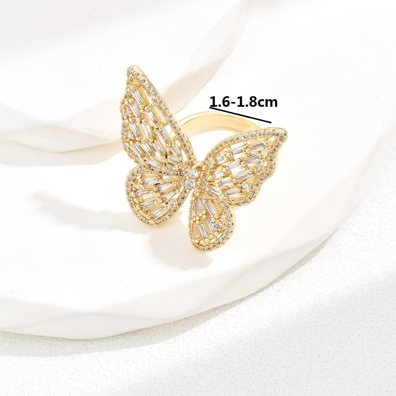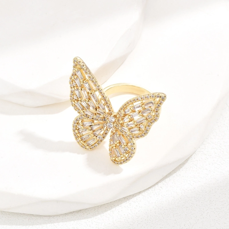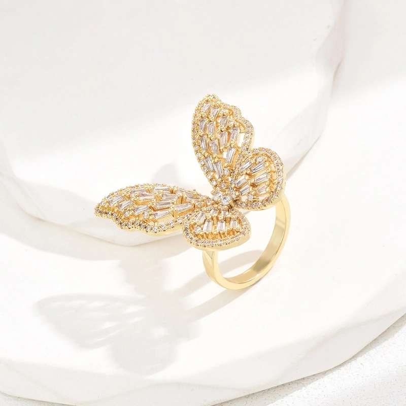 Luxurious Romantic Shiny Butterfly Copper Zircon Rings In Bulk