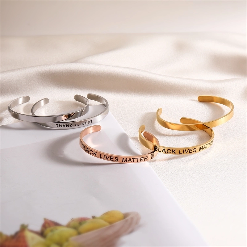 Minimalist C Shape Bamboo Joint Solid Color Titanium Steel Cuff Bracelets Bangle In Bulk