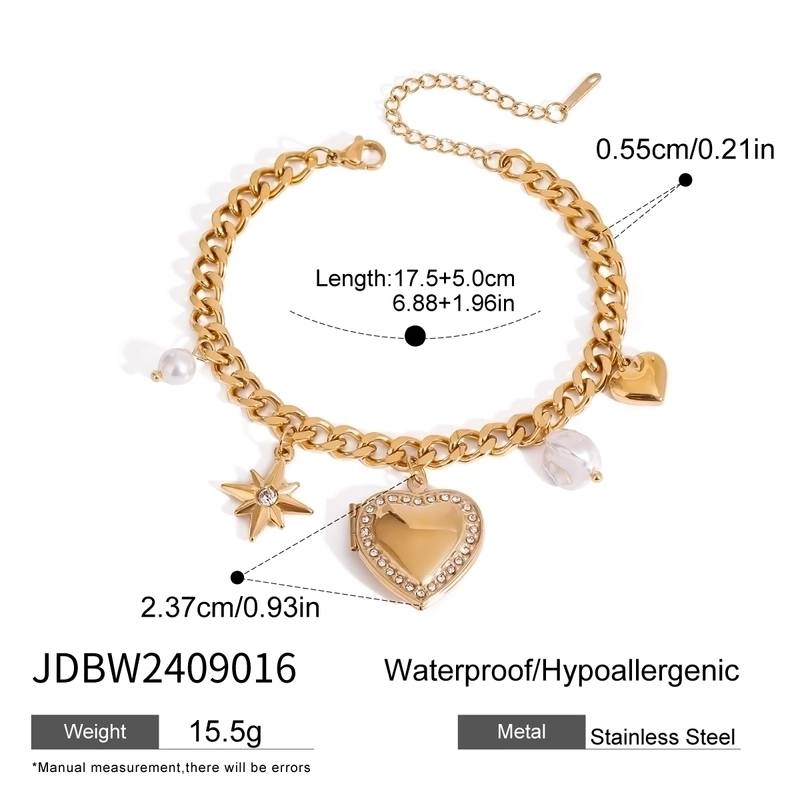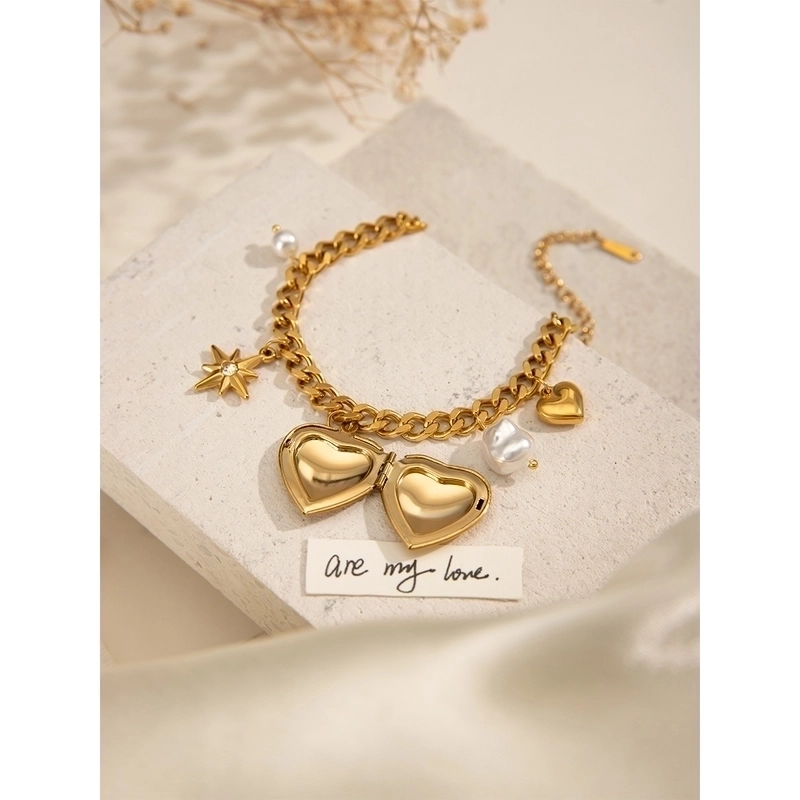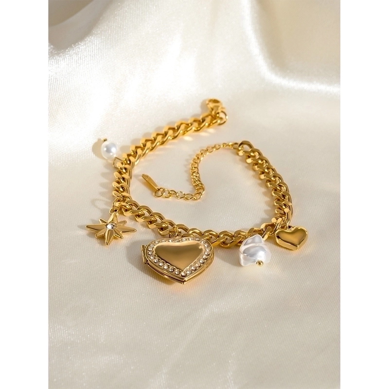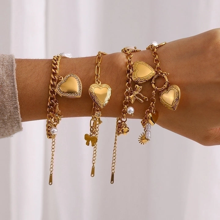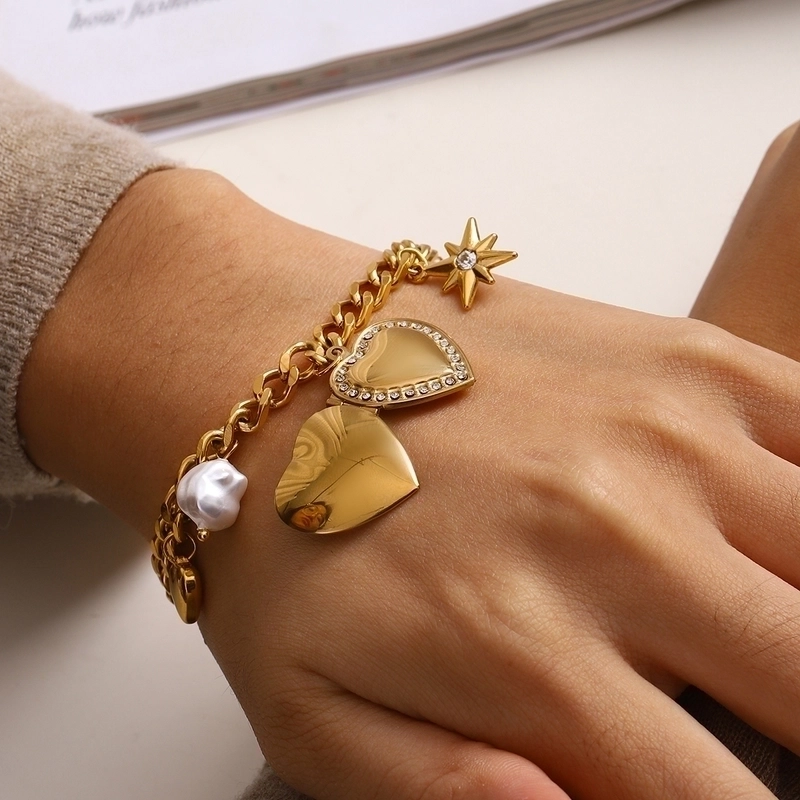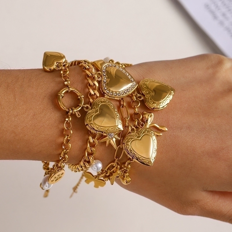 Minimalist Classic Style Heart Shape Bow Knot 304 Stainless Steel Zircon Cuban Link Chain Curb Chain Paperclip Chain Belcher Chain Multi Charms Bracelet In Bulk