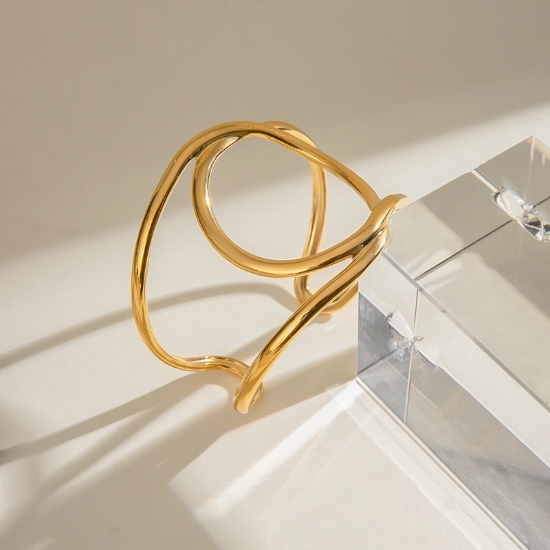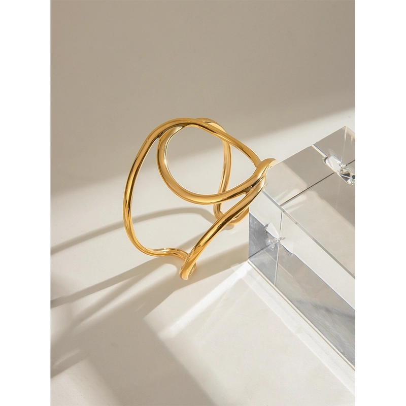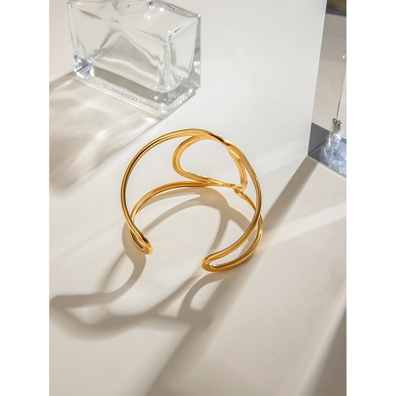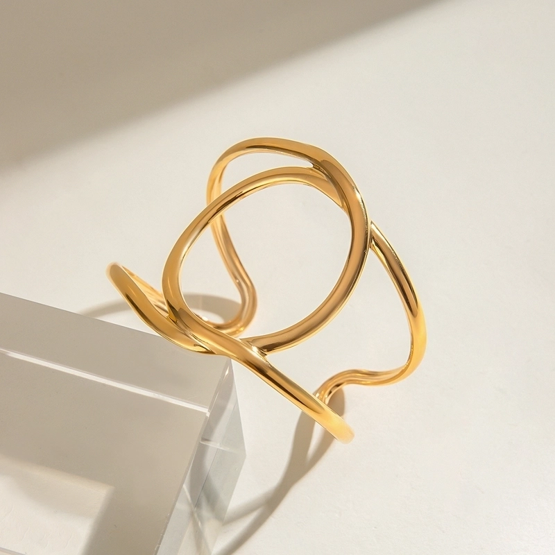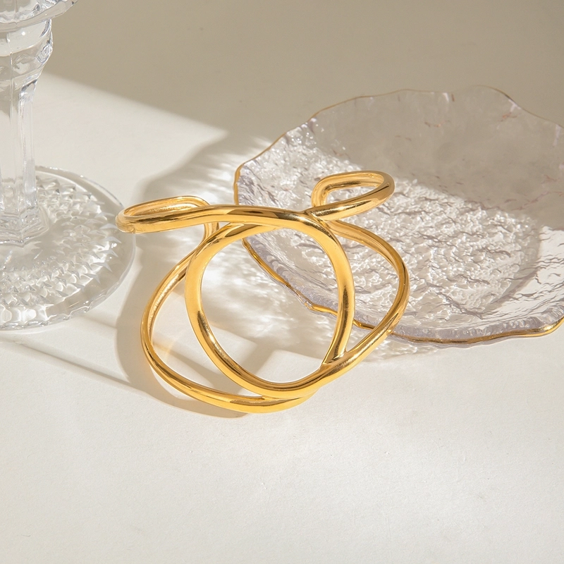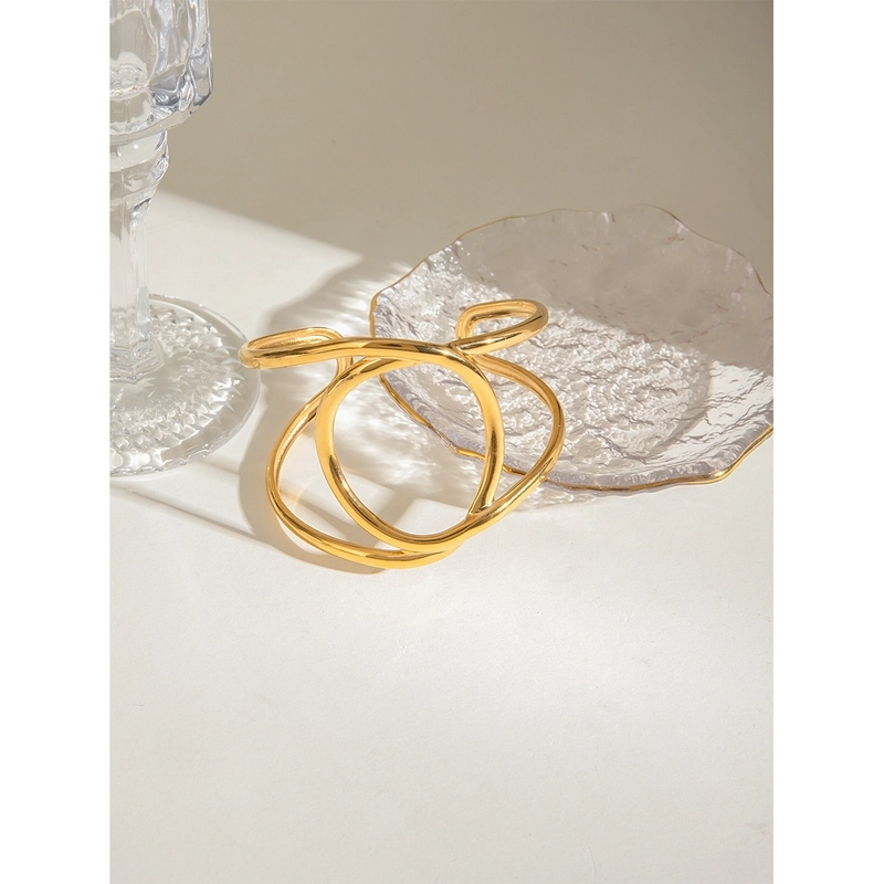 Minimalist Classic Style Lines 304 Stainless Steel 18K Gold Plated Bangle In Bulk