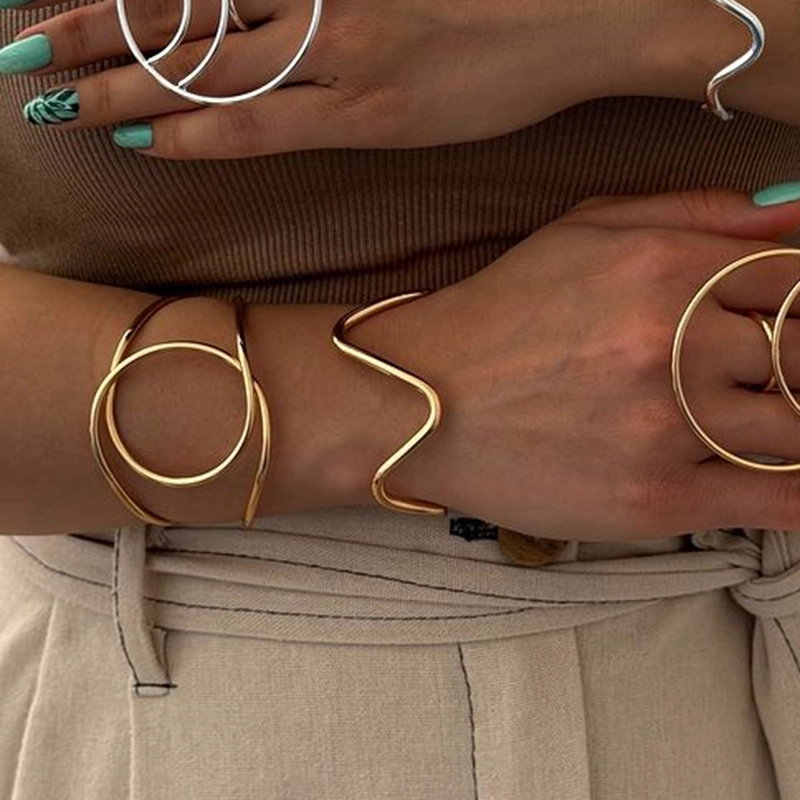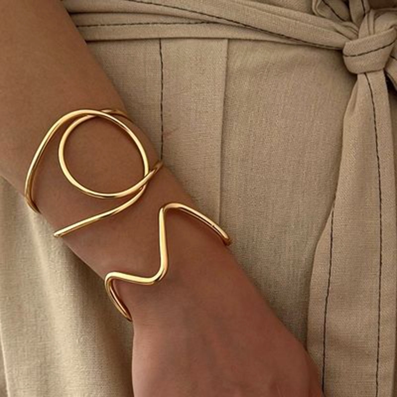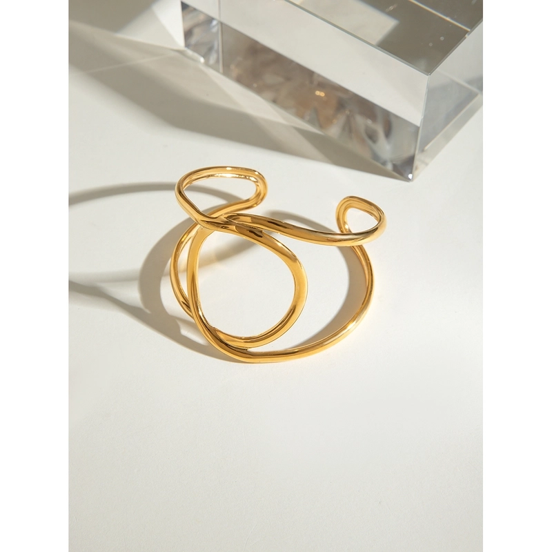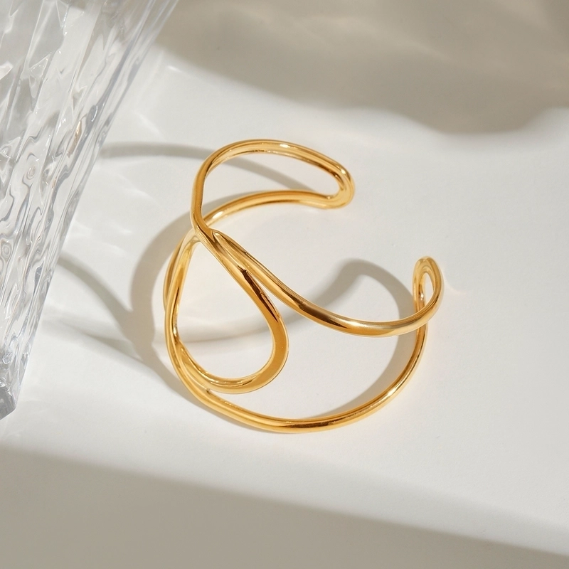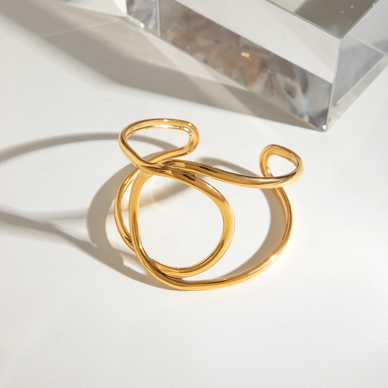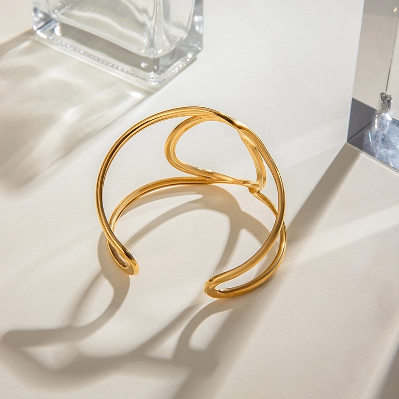Minimalist Classic Style Lines 304 Stainless Steel 18K Gold Plated Bangle In Bulk
