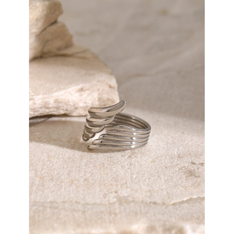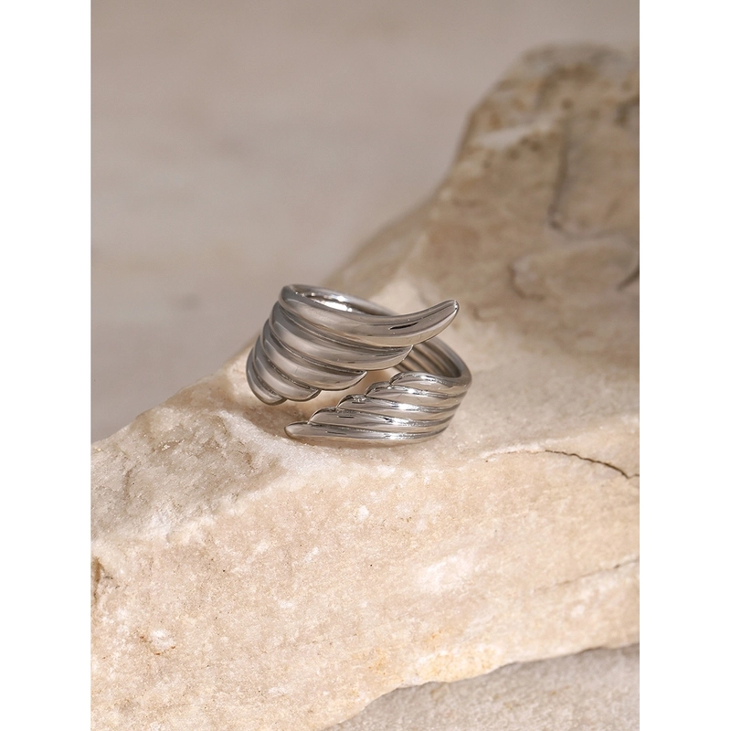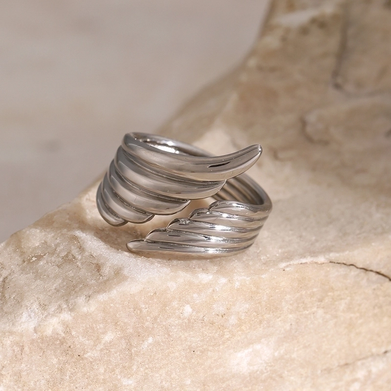Minimalist Classic Style Wings 316 Stainless Steel 18K Gold Plated Plating Rings