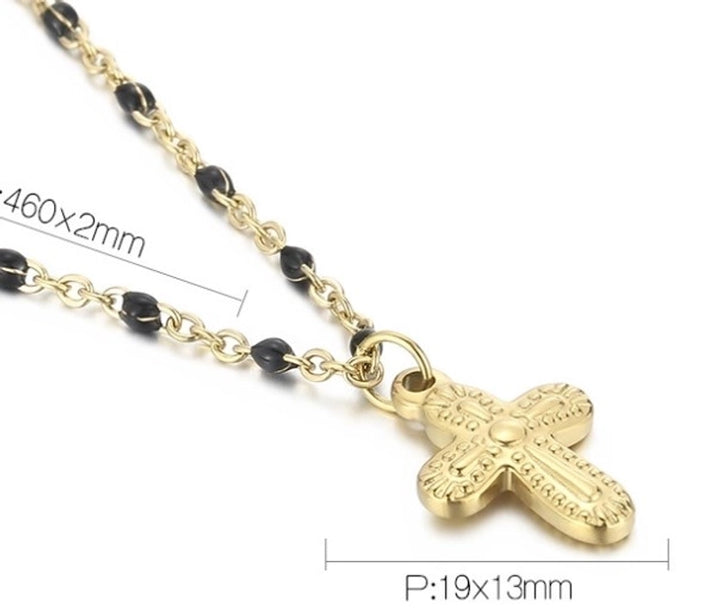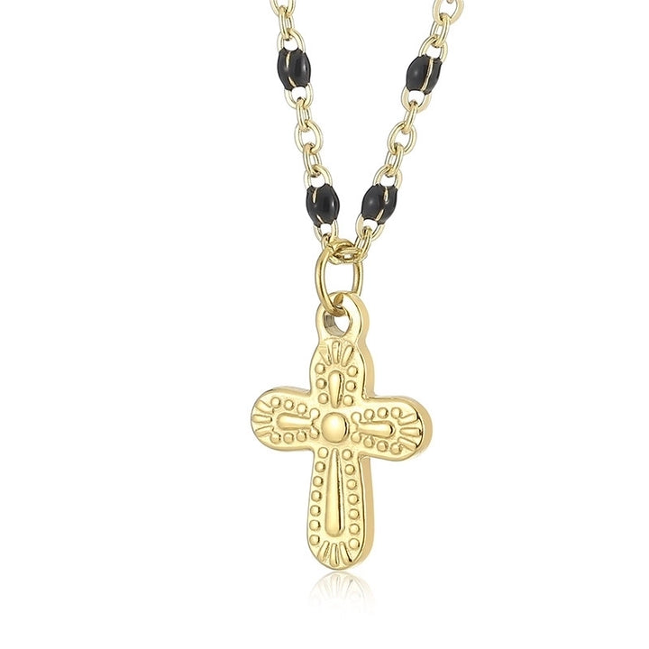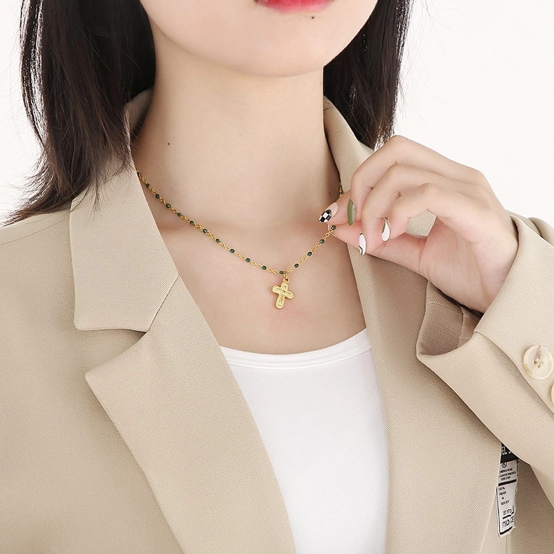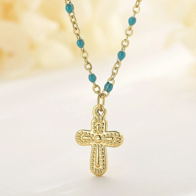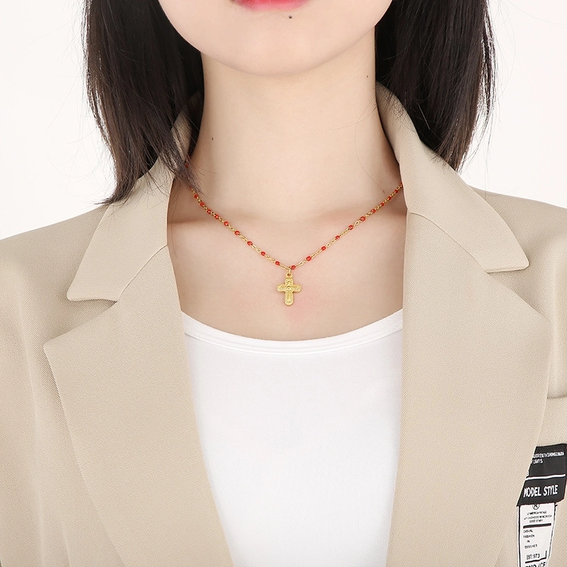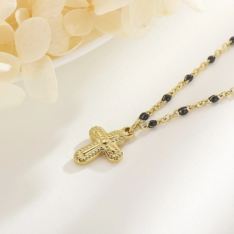 Minimalist Commute Cross Titanium Steel 18K Gold Plated Patchwork Pendant Necklace