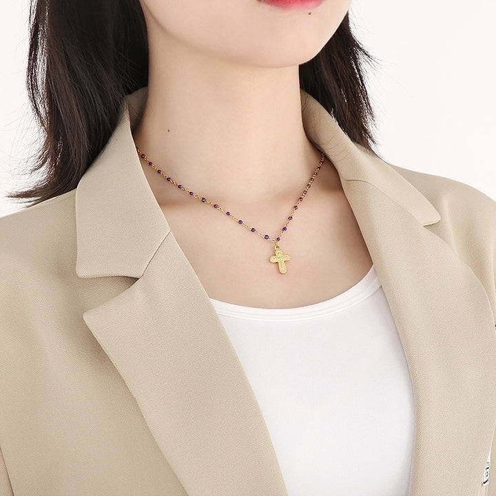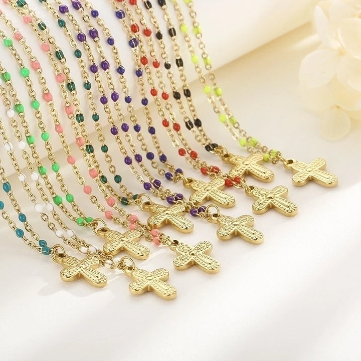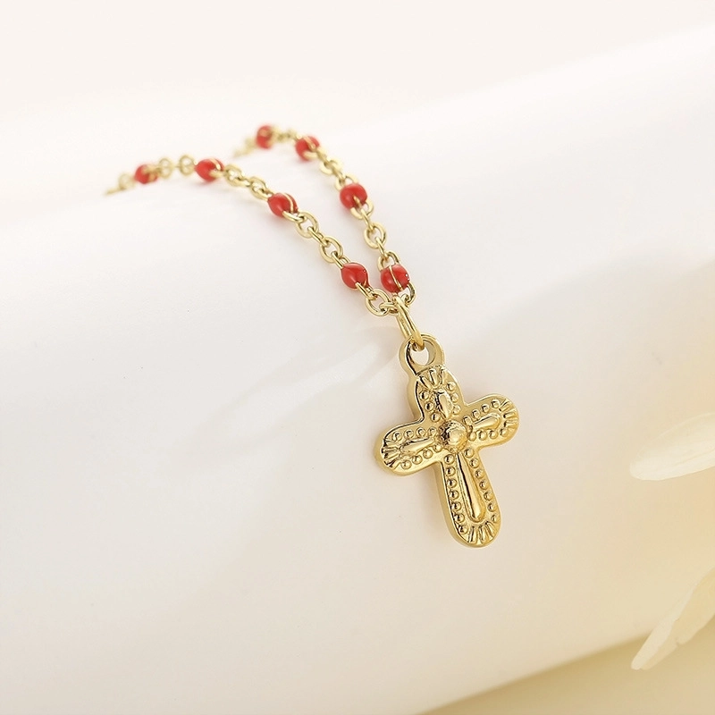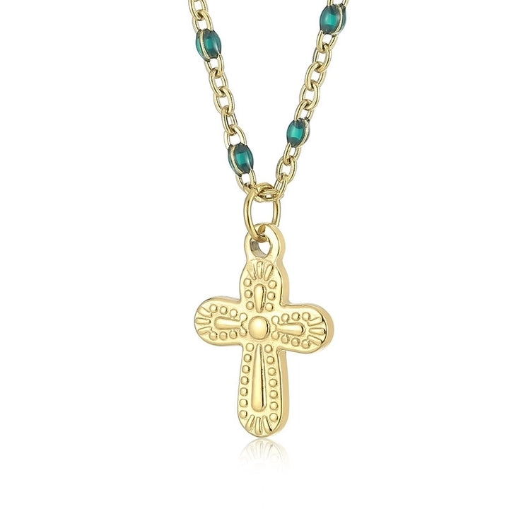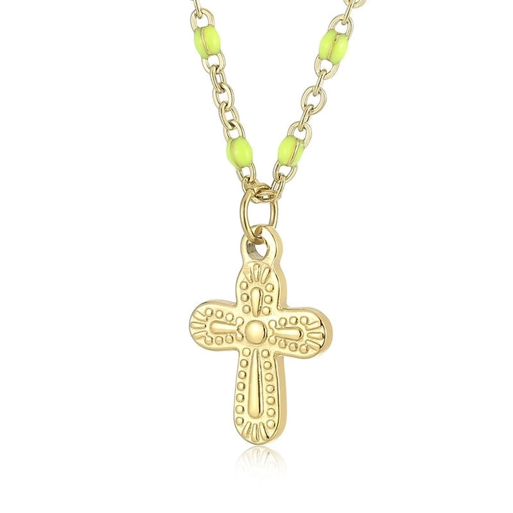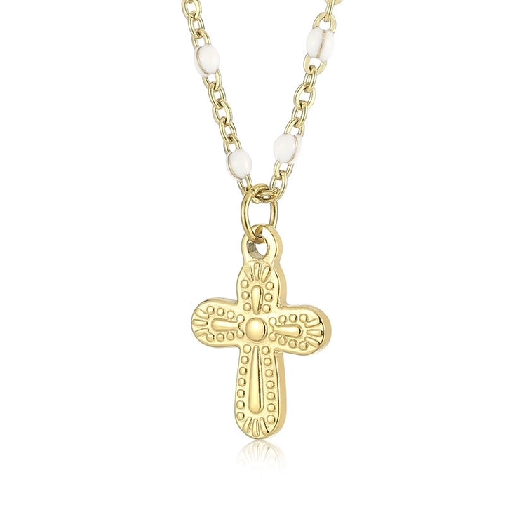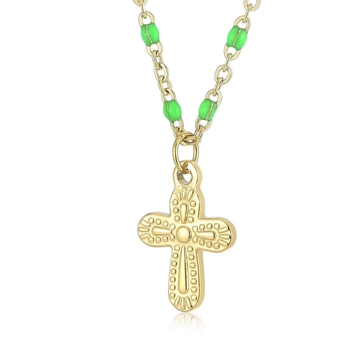 Minimalist Commute Cross Titanium Steel 18K Gold Plated Patchwork Pendant Necklace