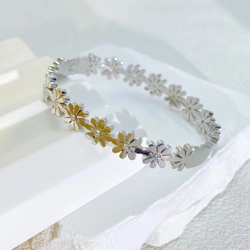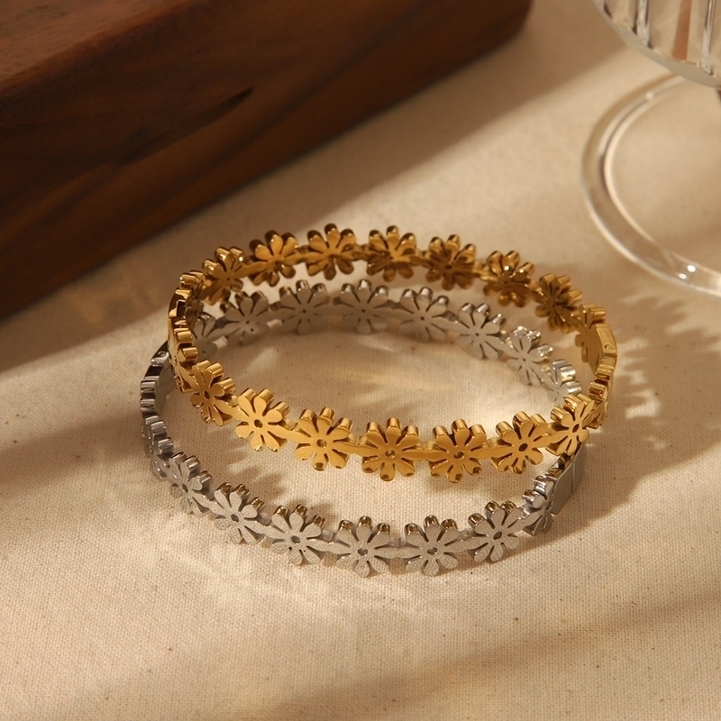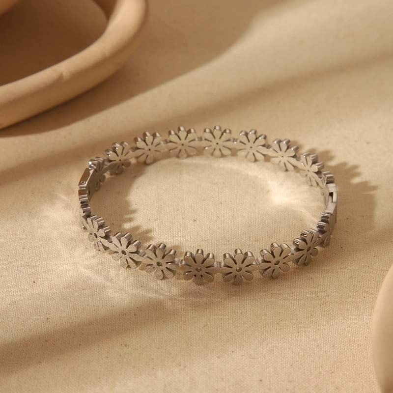 Minimalist Commute Solid Color Flower 304 Stainless Steel Bangle In Bulk