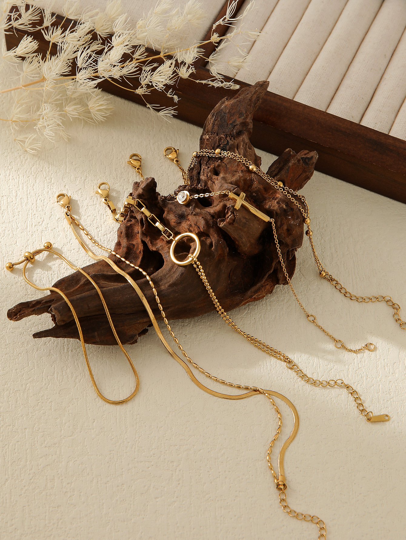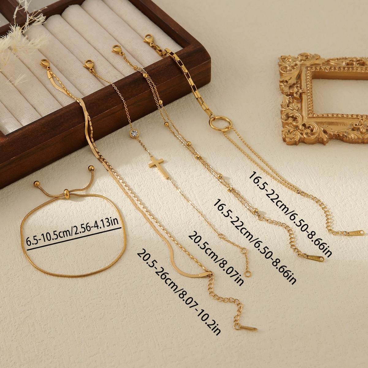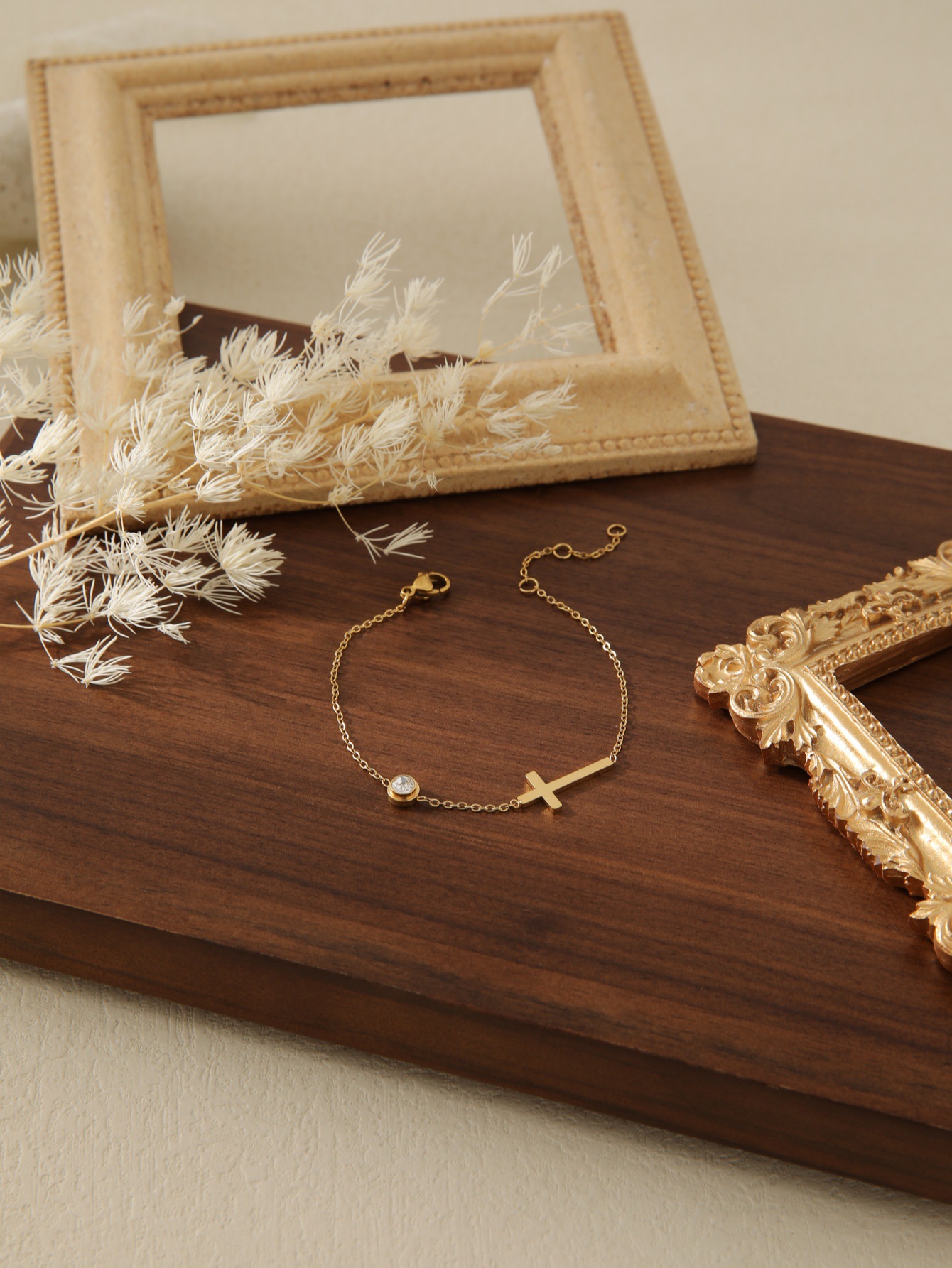 Minimalist Cross Round Solid Color 304 Stainless Steel Zircon Bracelets In Bulk