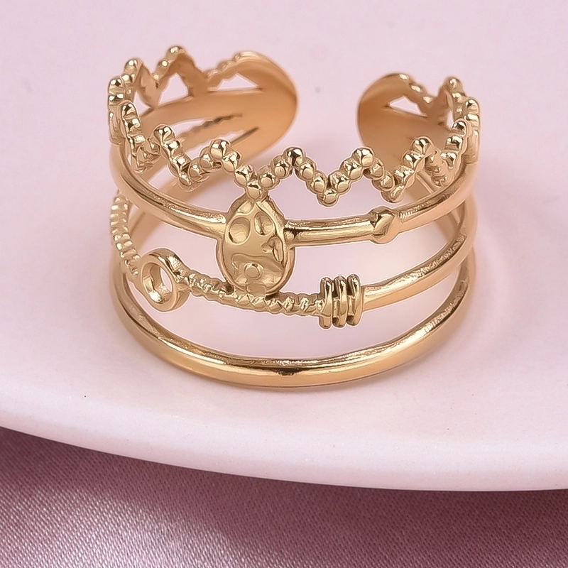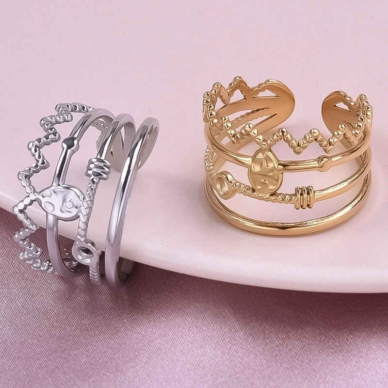 Minimalist Geometric 304 Stainless Steel 18K Gold Plated Polishing Hollow Out Open Rings