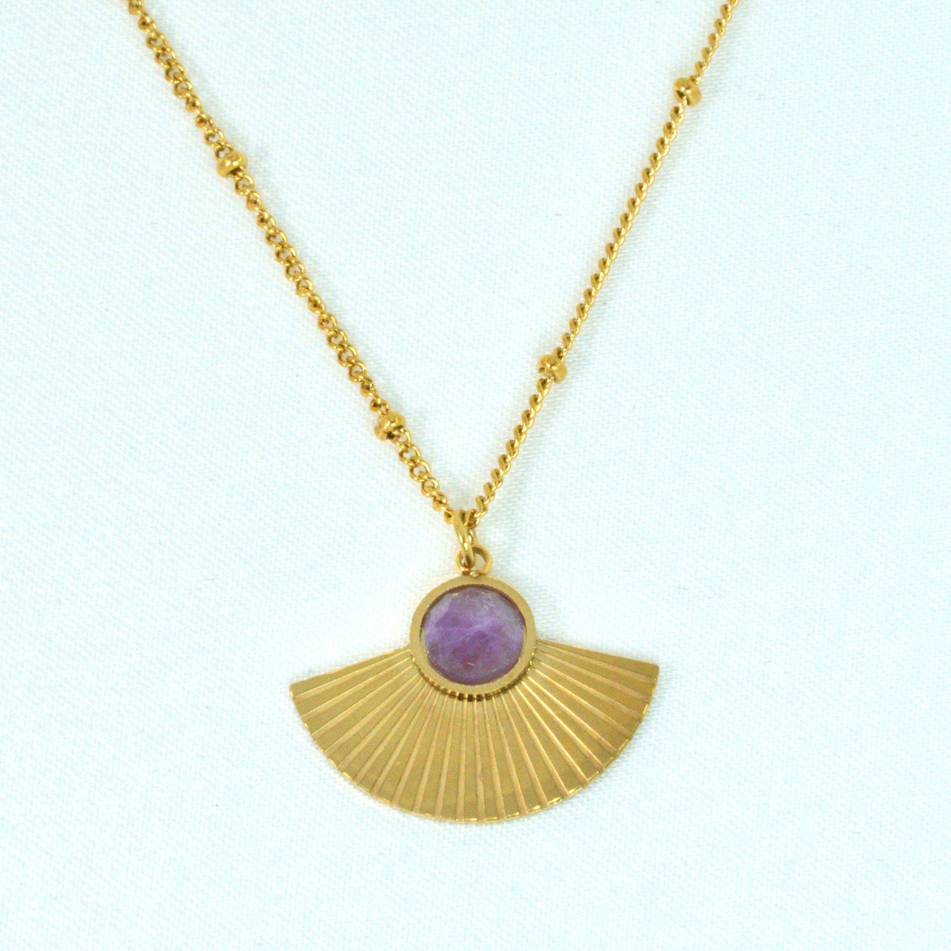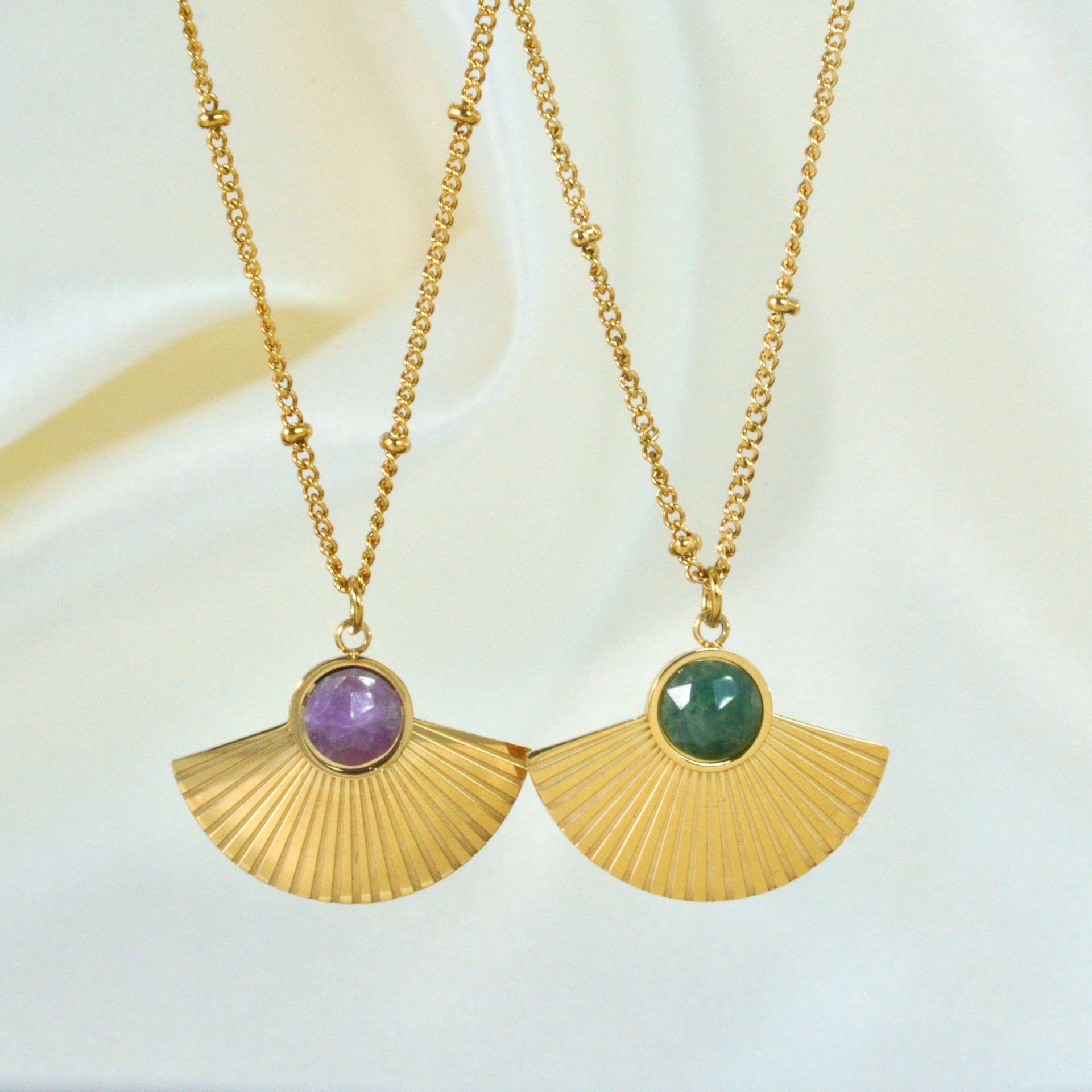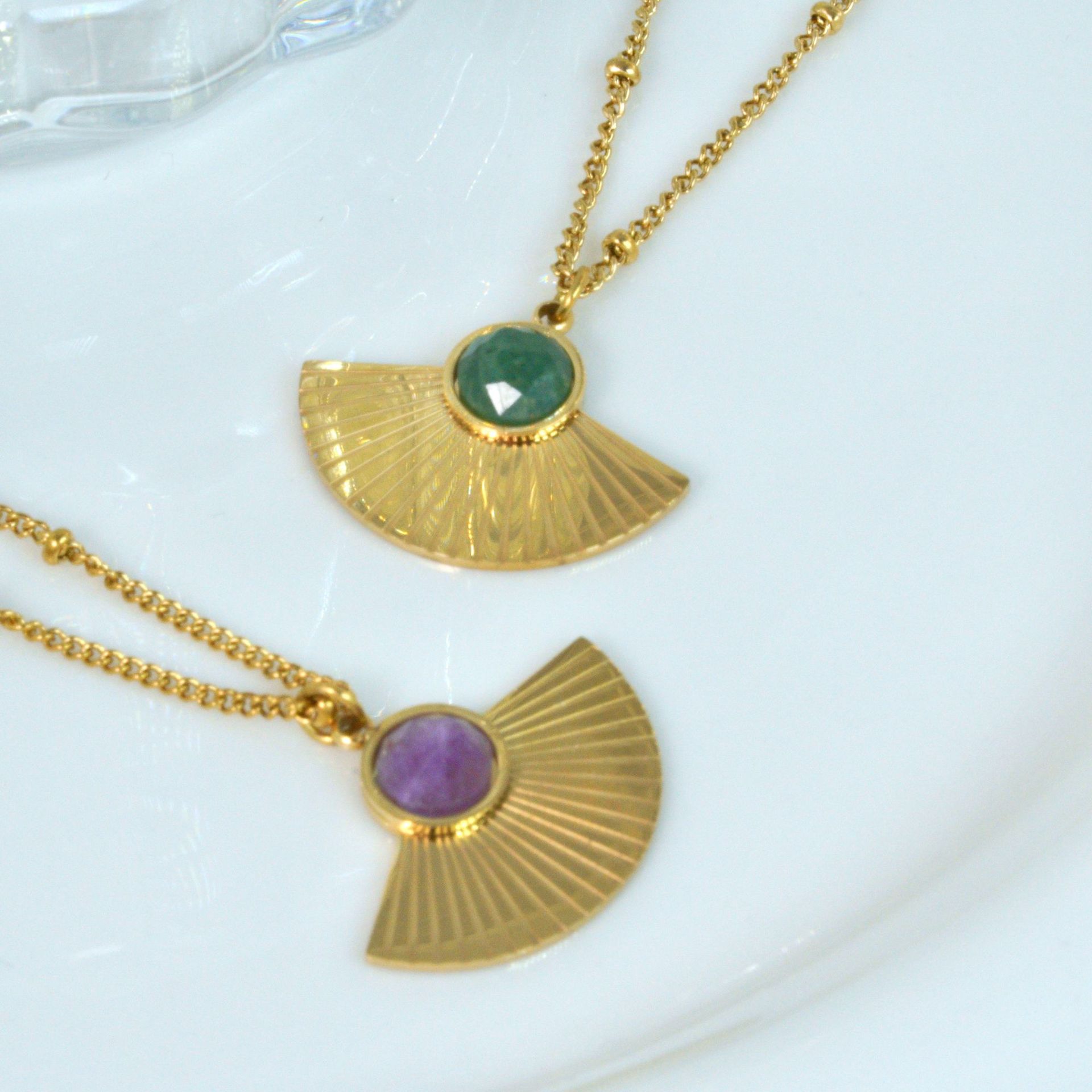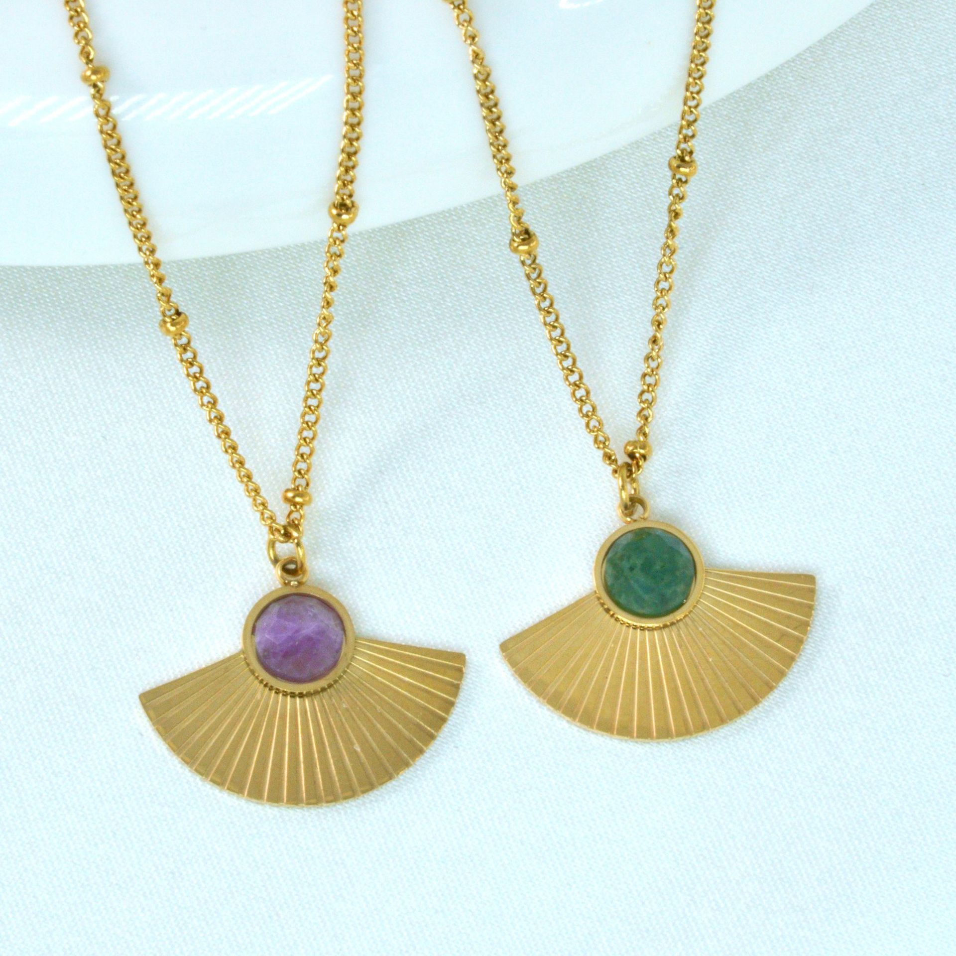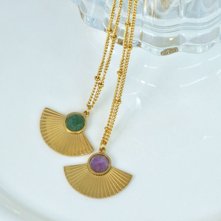 Minimalist Geometric Natural Stone Titanium Steel Plating Pendant Necklace