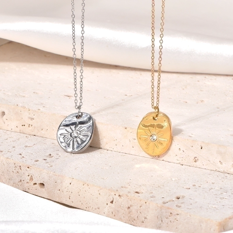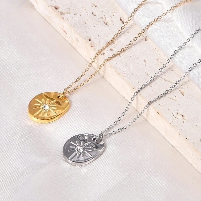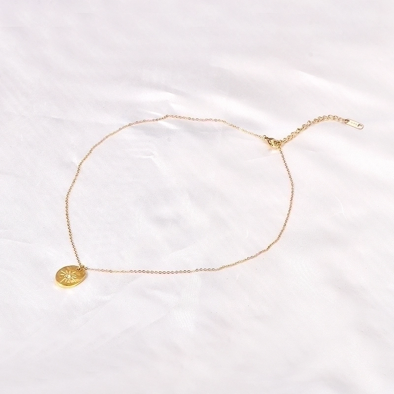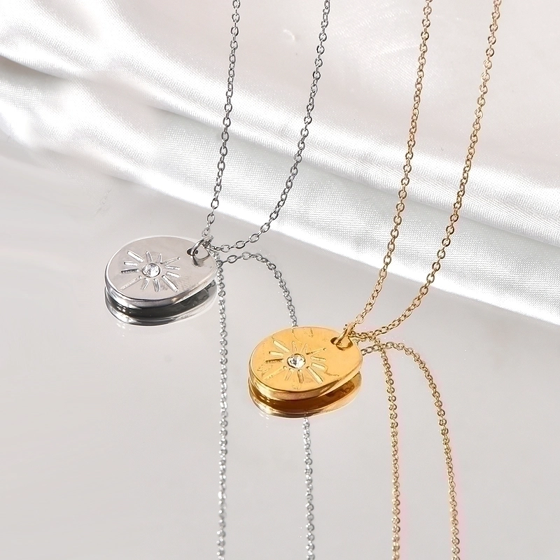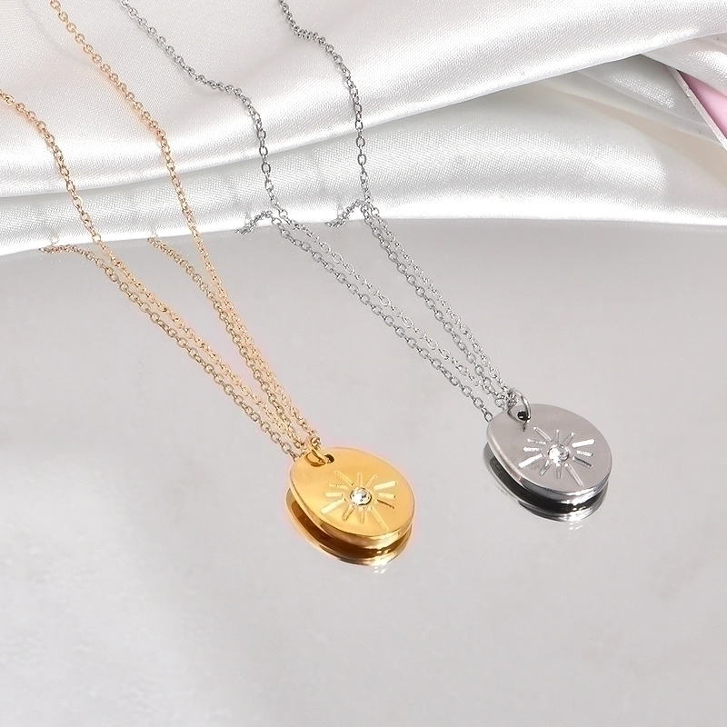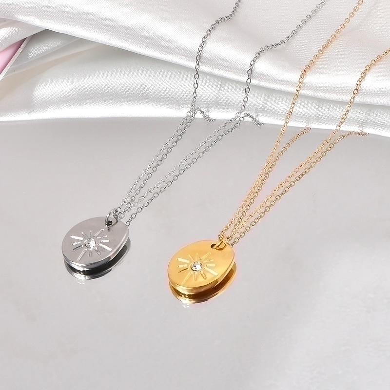 Minimalist Geometric Titanium Steel Zircon Inlay Pendant Necklace