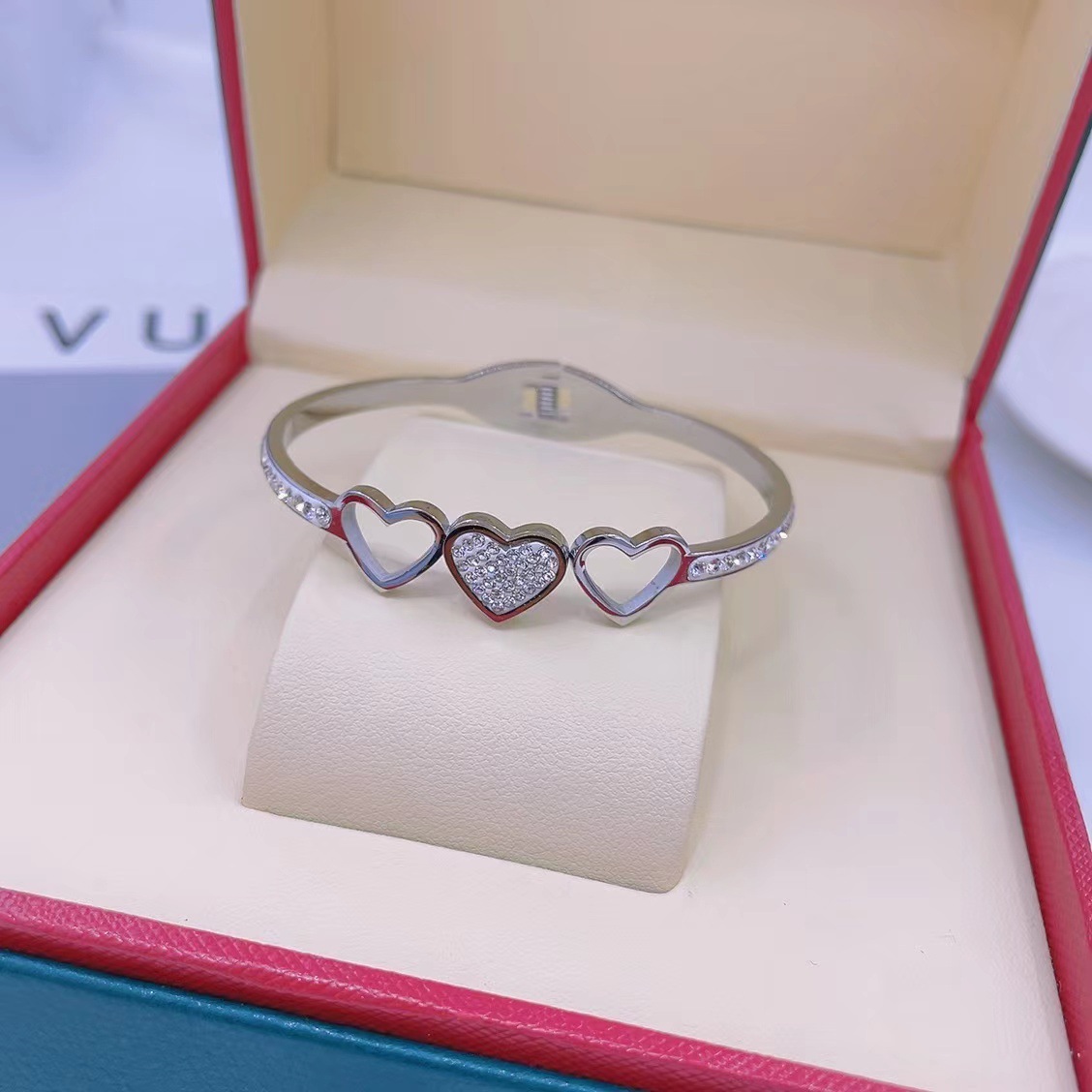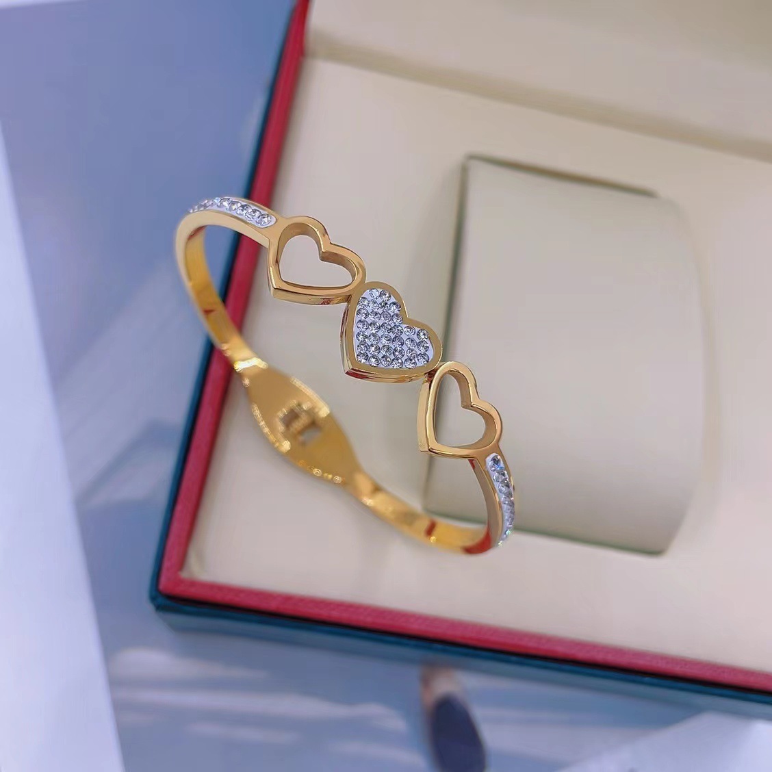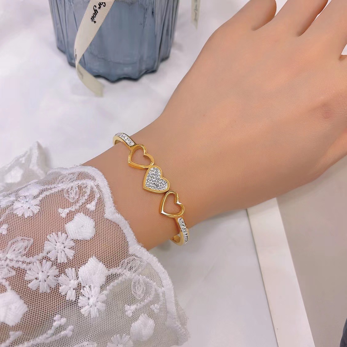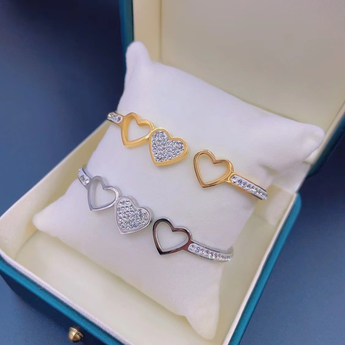 Minimalist Heart Shape Stainless Steel Inlay Zircon Bangle