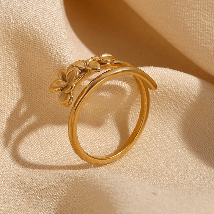 Minimalist Niche Flower Geometric Stainless Steel 18K Gold Plated Rings