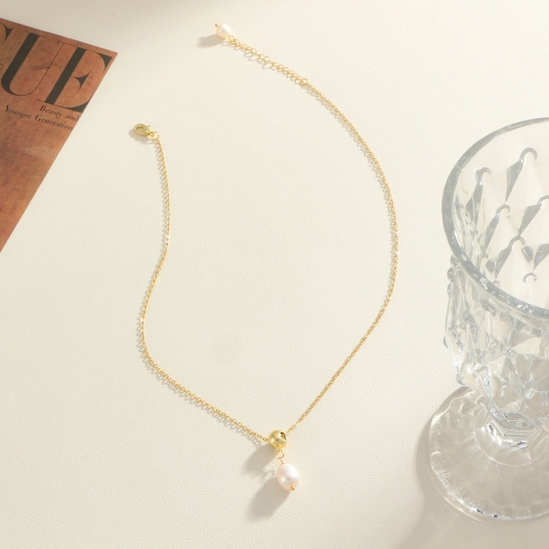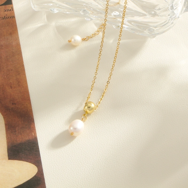 Minimalist Oval Freshwater Pearl Titanium Steel Gold Plated Pendant Necklace