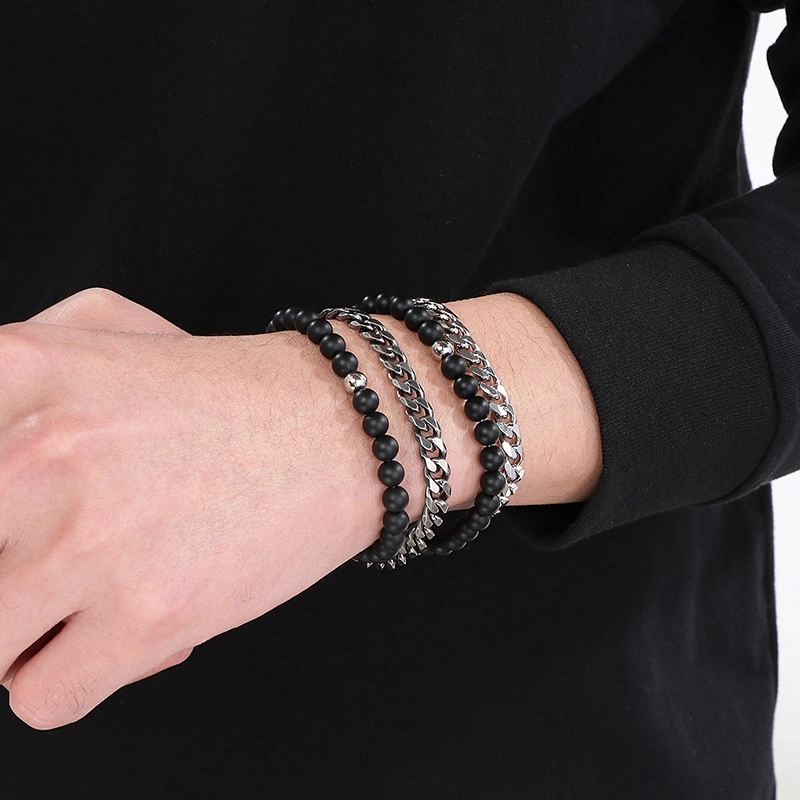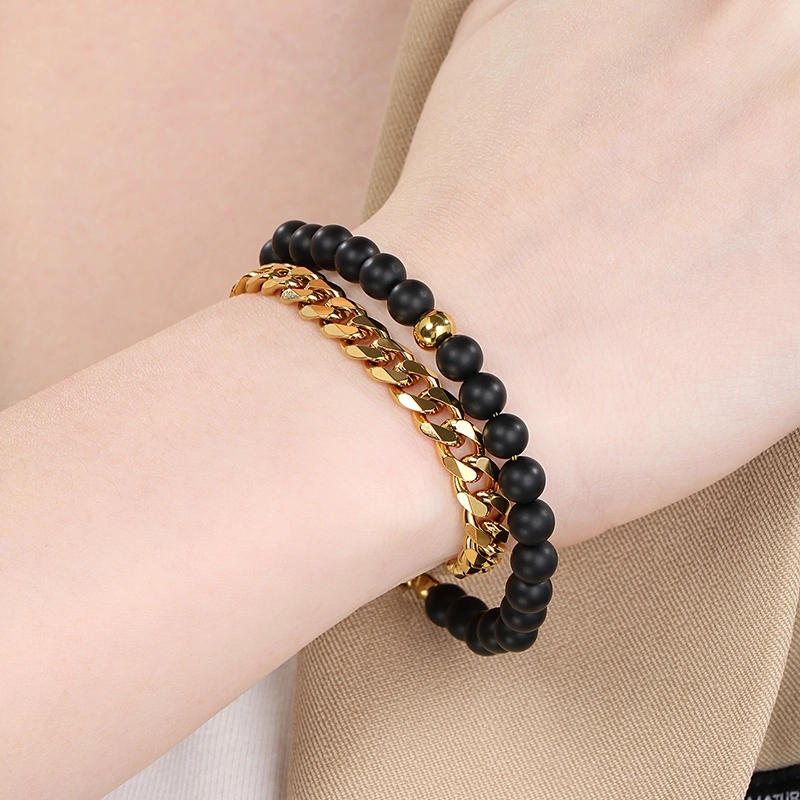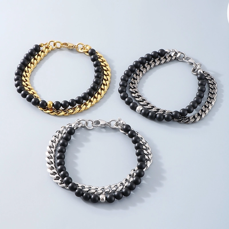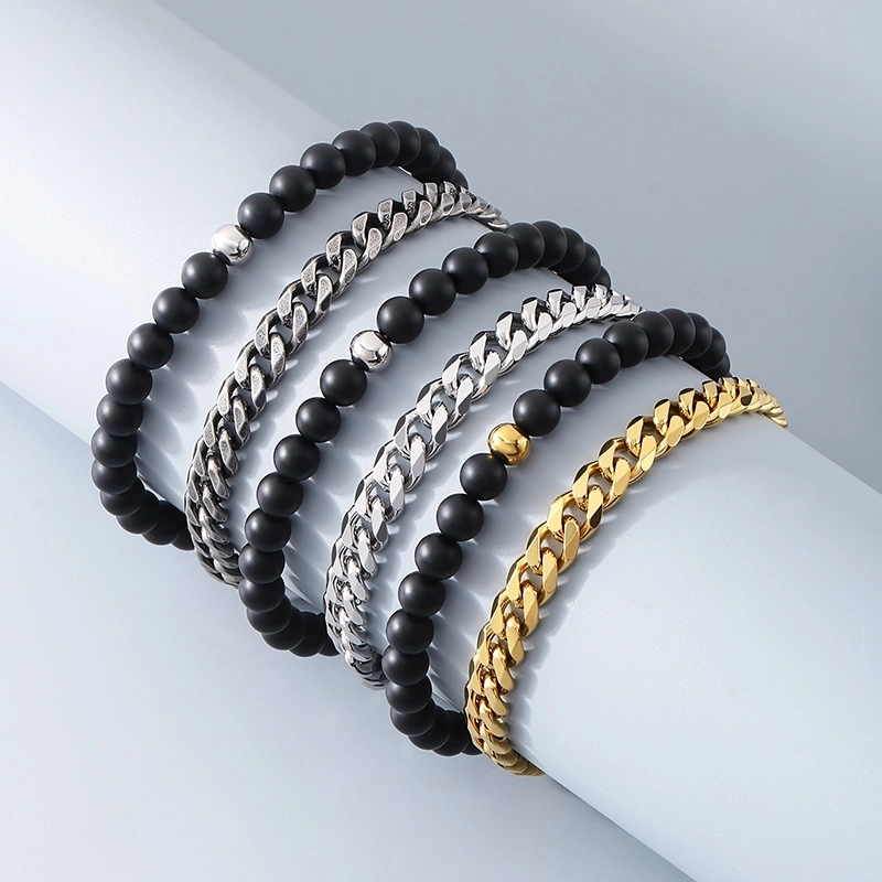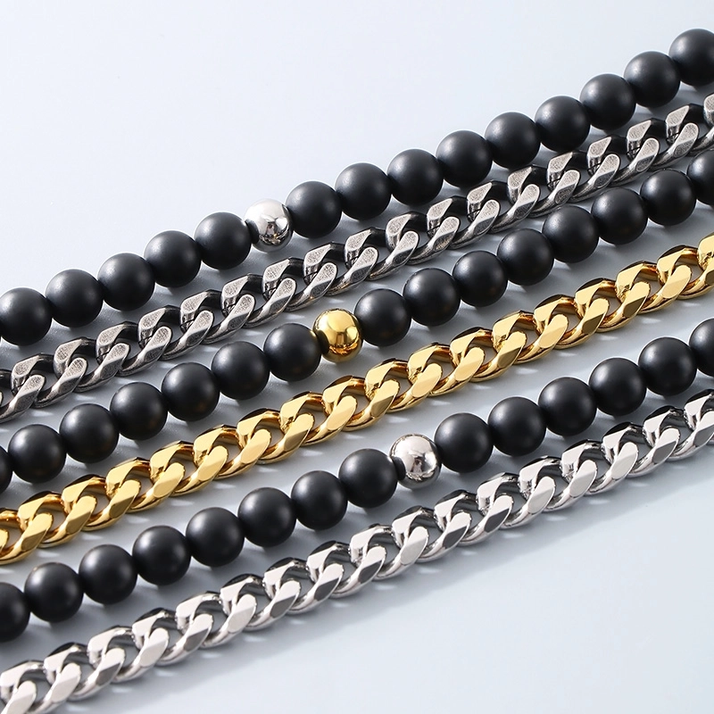 Minimalist Round 304 Stainless Steel Beaded Chain Cuban Link Chain Curb Chain Bracelets In Bulk