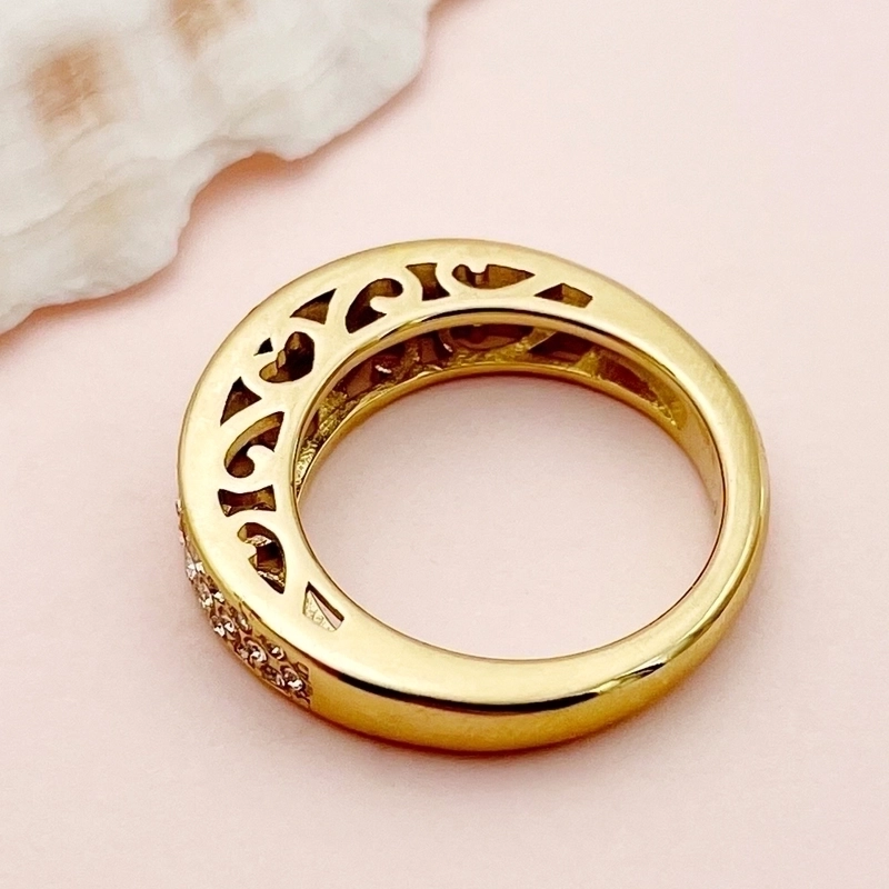 Minimalist Solid Color 304 Stainless Steel Zircon 14K Gold Plated Plating Inlay Stainless Steel Rings