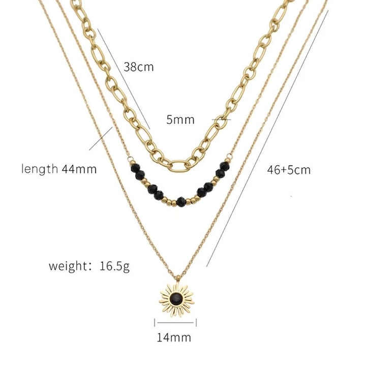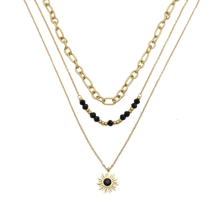 Minimalist Sun Titanium Steel Artificial Gemstones 18K Gold Plated Beaded Inlay Three Layer Necklace