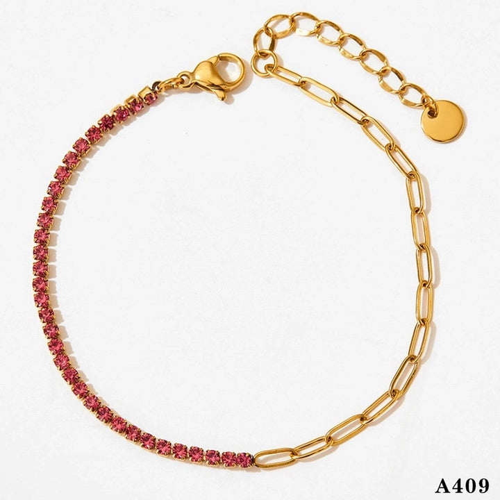 Modern Style Artistic Geometric 304 Stainless Steel Zircon 16K Gold Plated White Gold Plated Gold Plated Inlay Bracelets Anklet