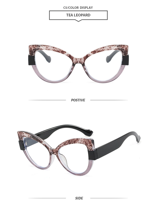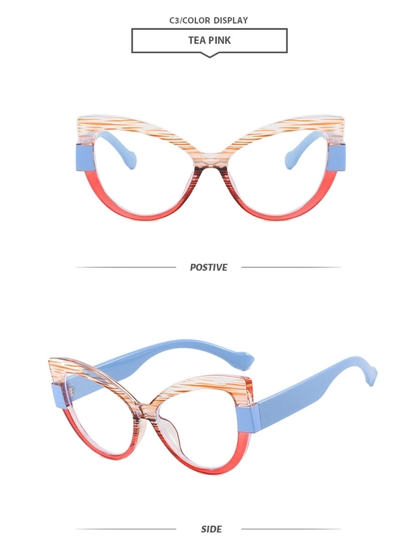 New Fashion Color Contrast Cat'S Eye Plain Glasses Personality Simple Casual Plain Face Anti-Blue Light Spectacle Frame