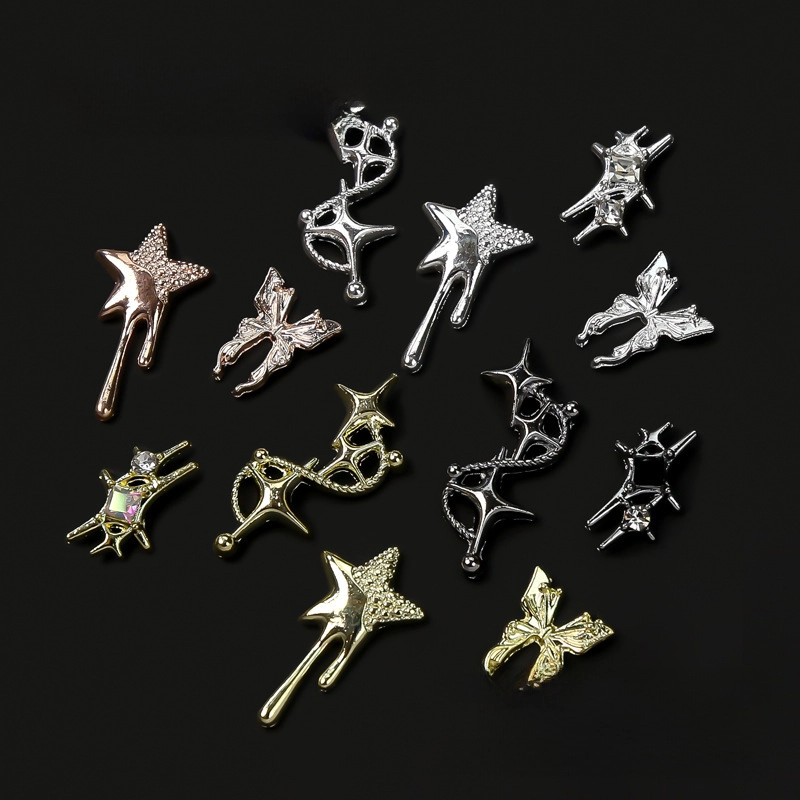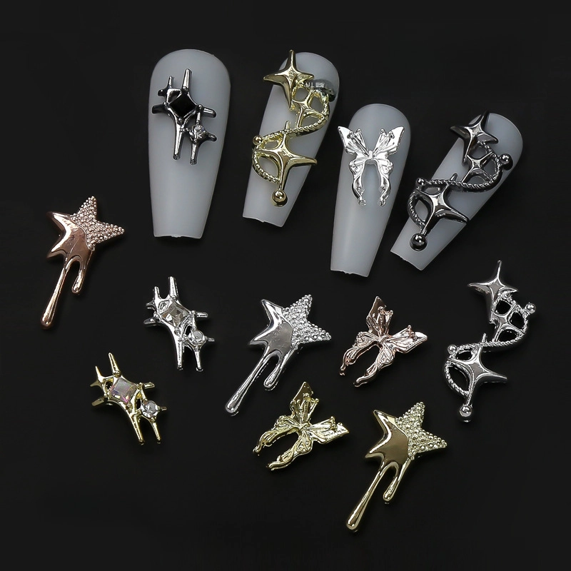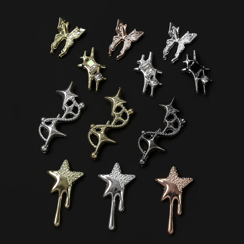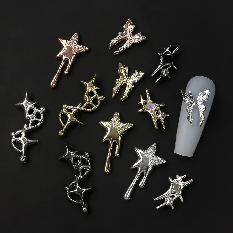 New Nail Art Crock Heart Retro Punk Style Sweet Cool Asymmetric Star Butterfly Alloy Jewelry Diamond Diy Accessories
