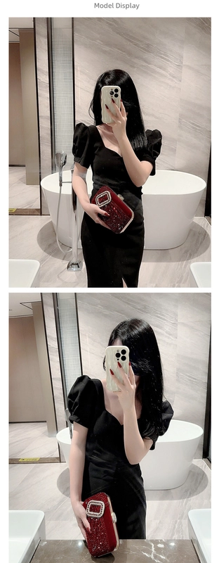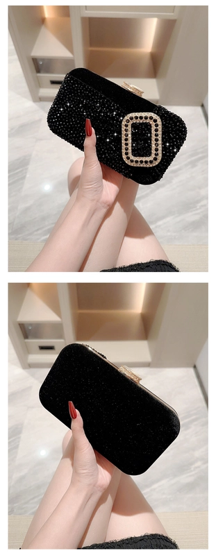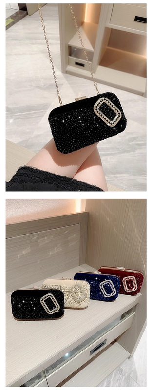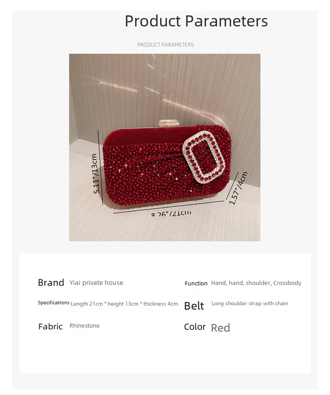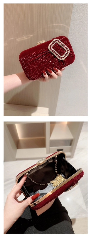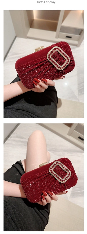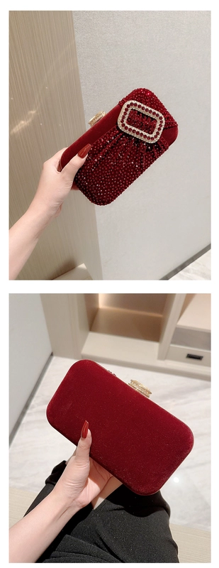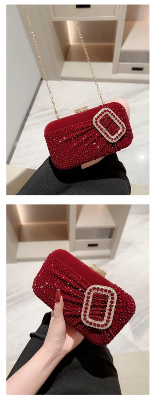 New Red Square Buckle Banquet Bag Evening Bag Velvet Dinner Clutch Bag Chain Bag High-Grade Box Bag For Women