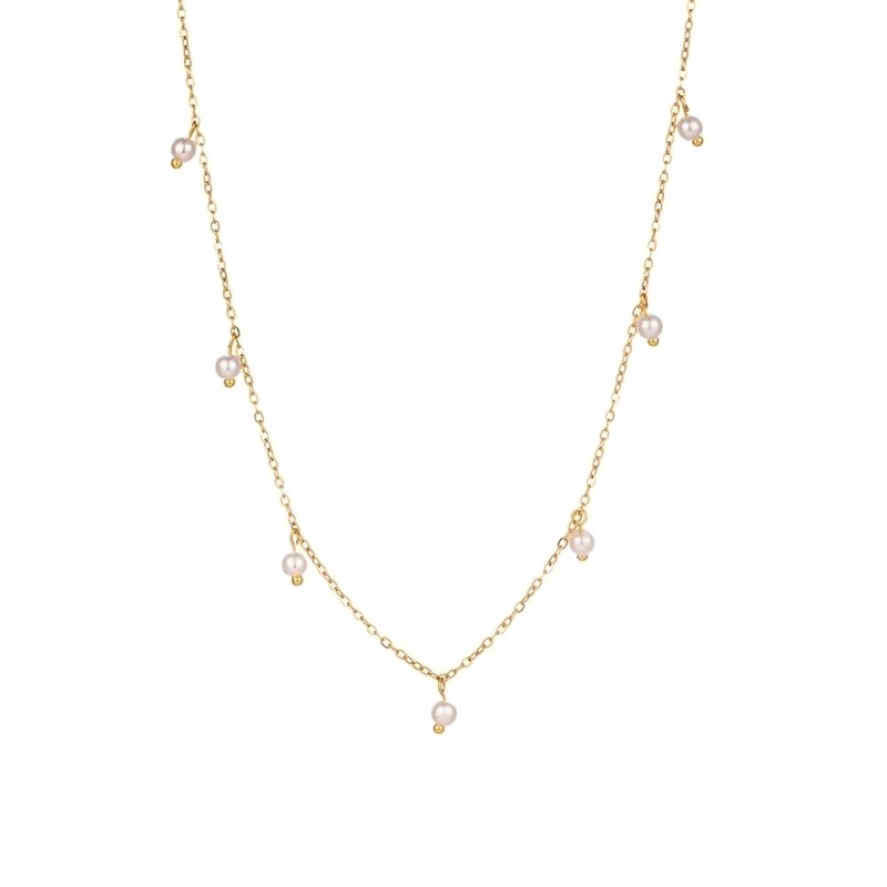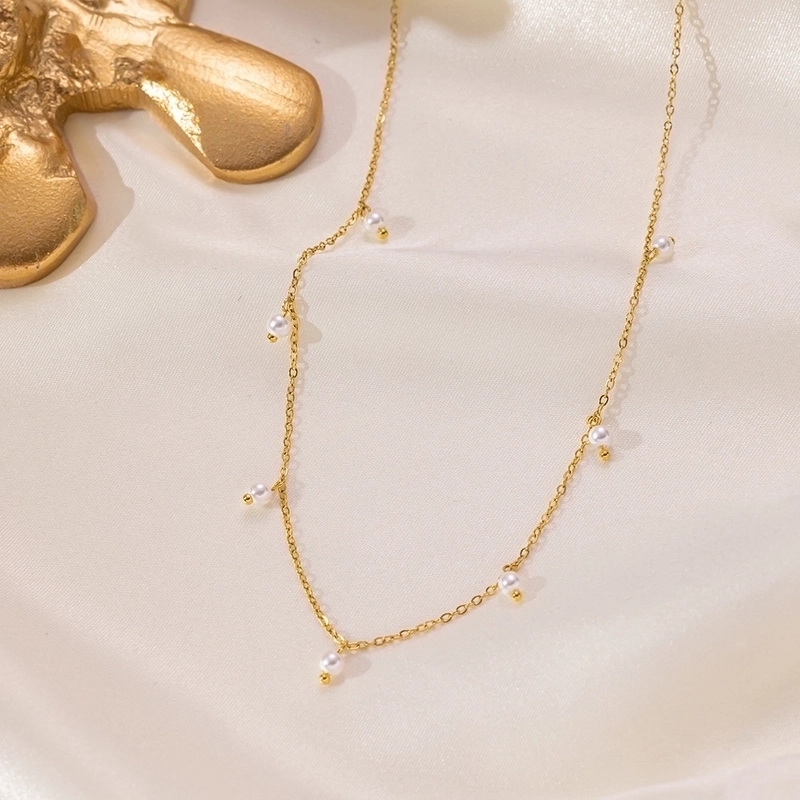 One Style 18K Real Gold Stainless Steel Small Bead Tassel Necklace