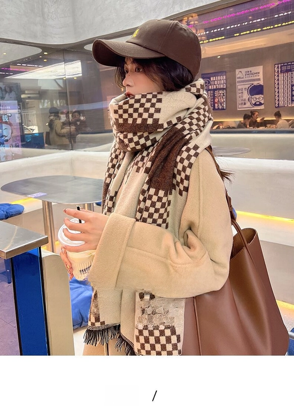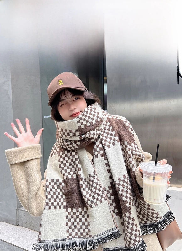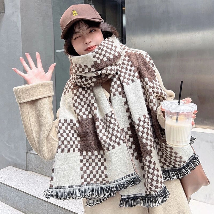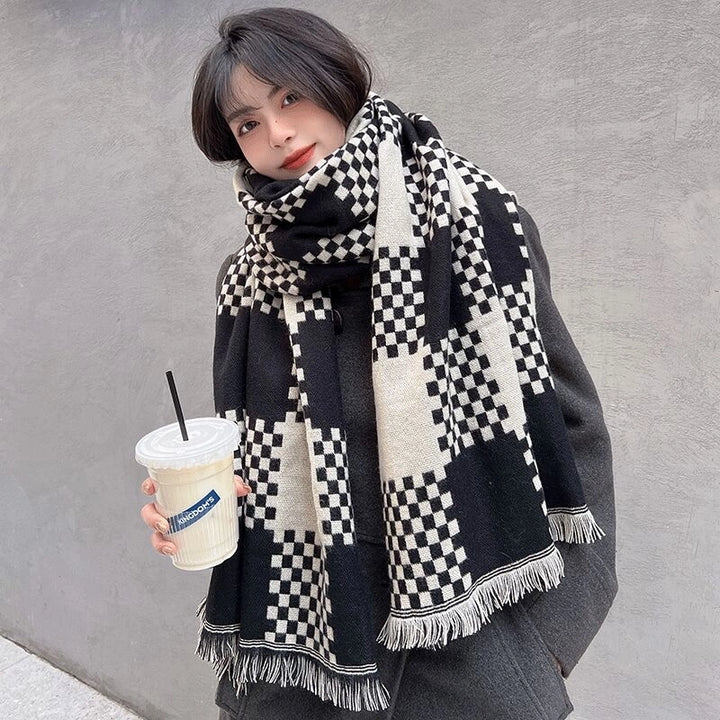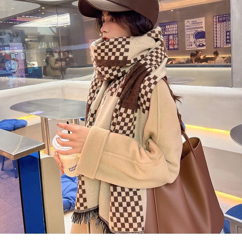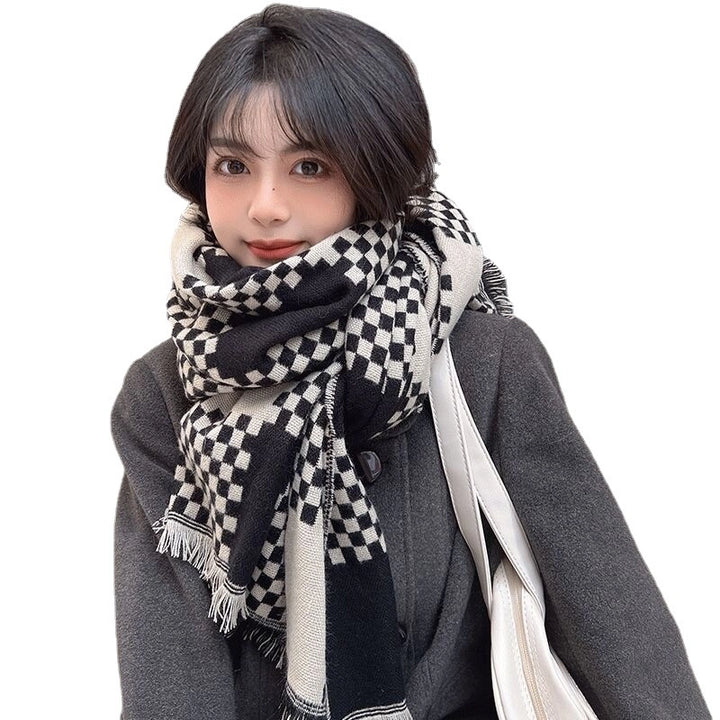 Online Celebrity British Plaid Cashmere Scarf Women'S Autumn And Winter Versatile Student Thickened Scarf Shawl Dual-Use Couple Men