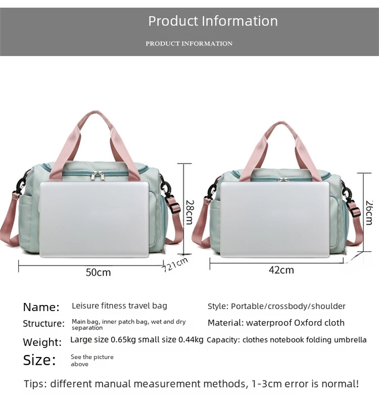 Outdoor Sports Travel Bag Dry And Wet Separation Fitness Bag Large Capacity Luggage Bag Women'S Bag Yoga Bag Duffel Bag