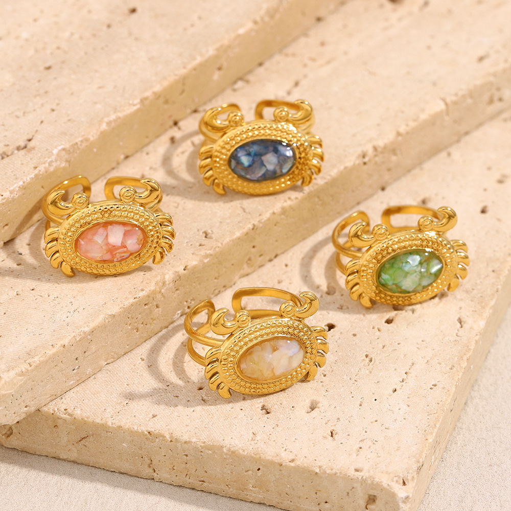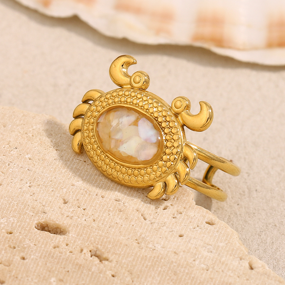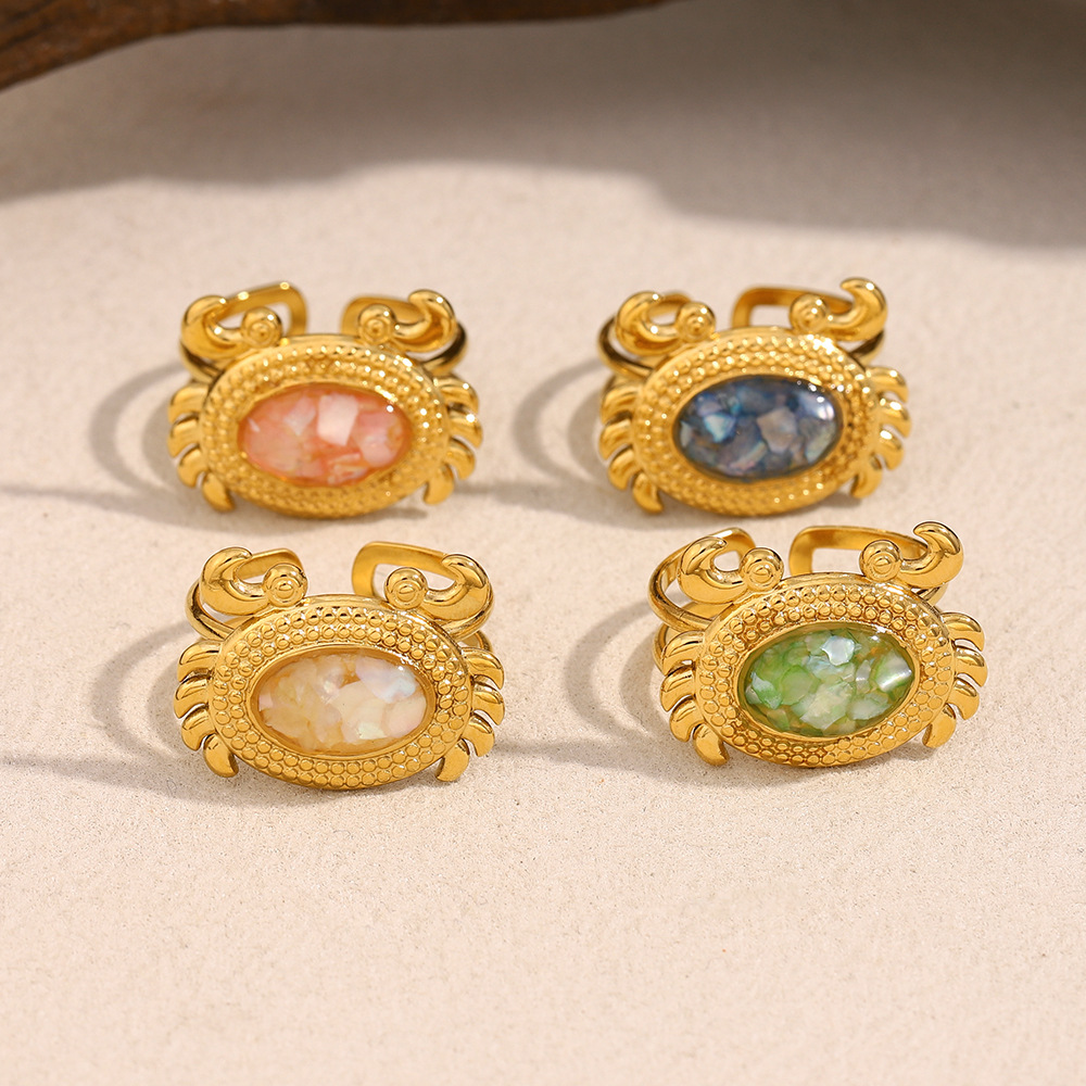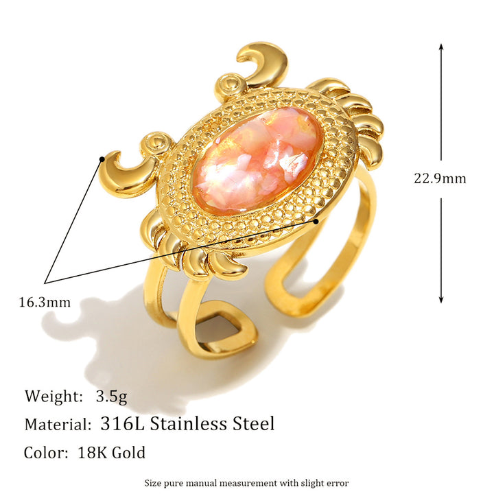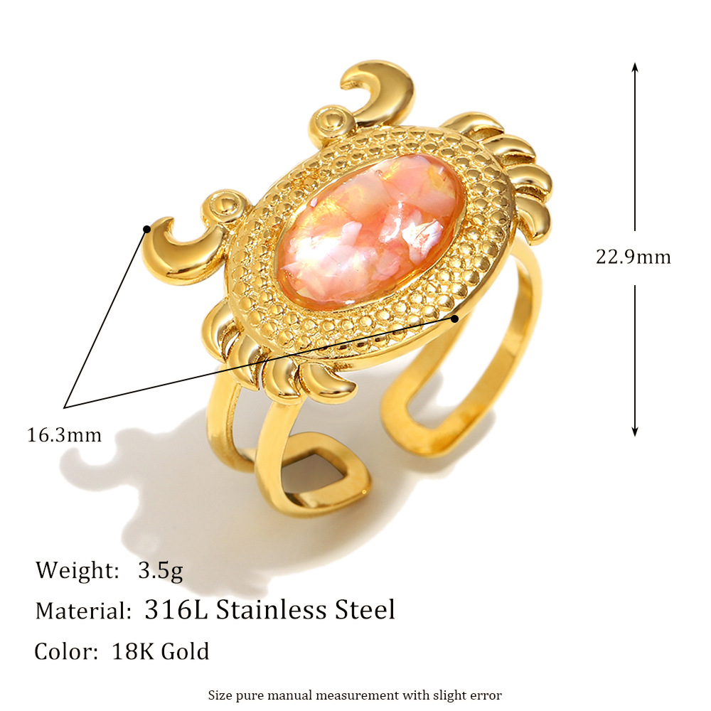 Personalized Niche Stainless Steel Plated 18K Gold Crab Oil Broken Shell Open Ring For Women