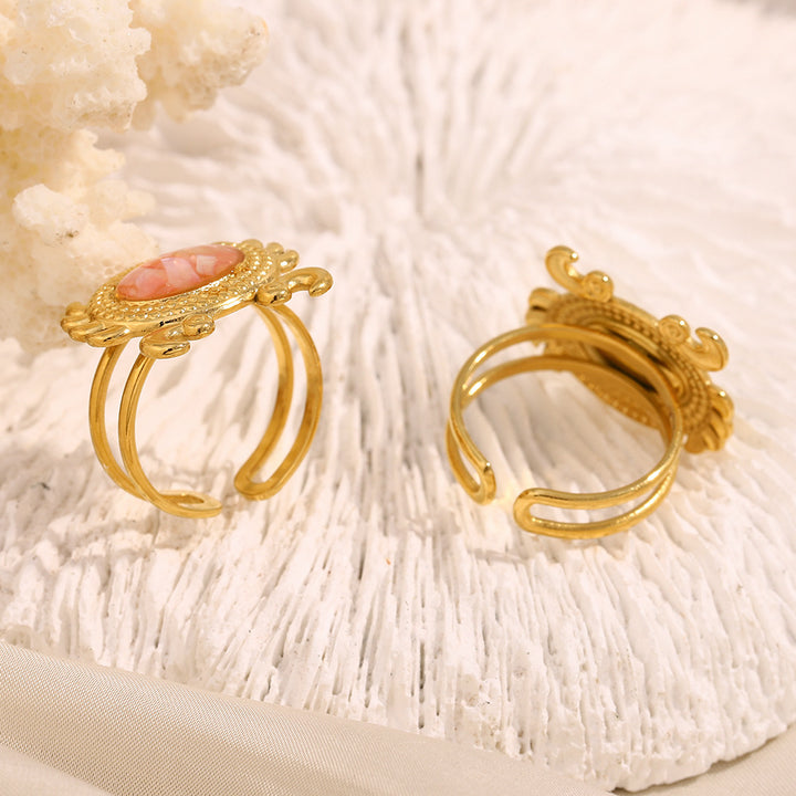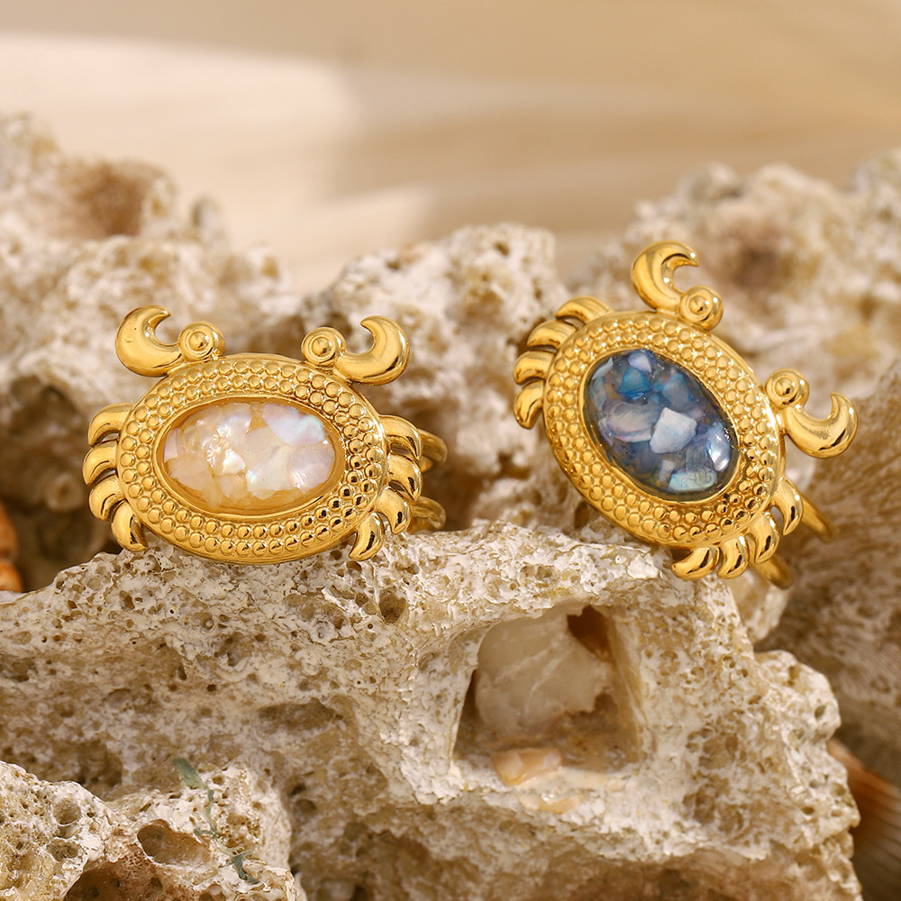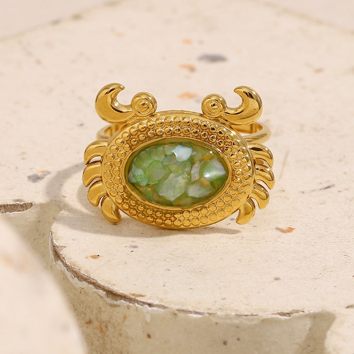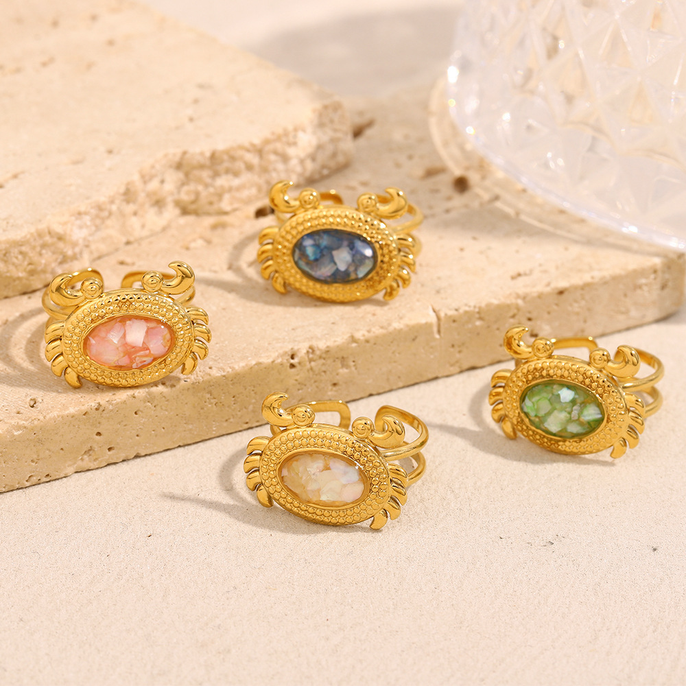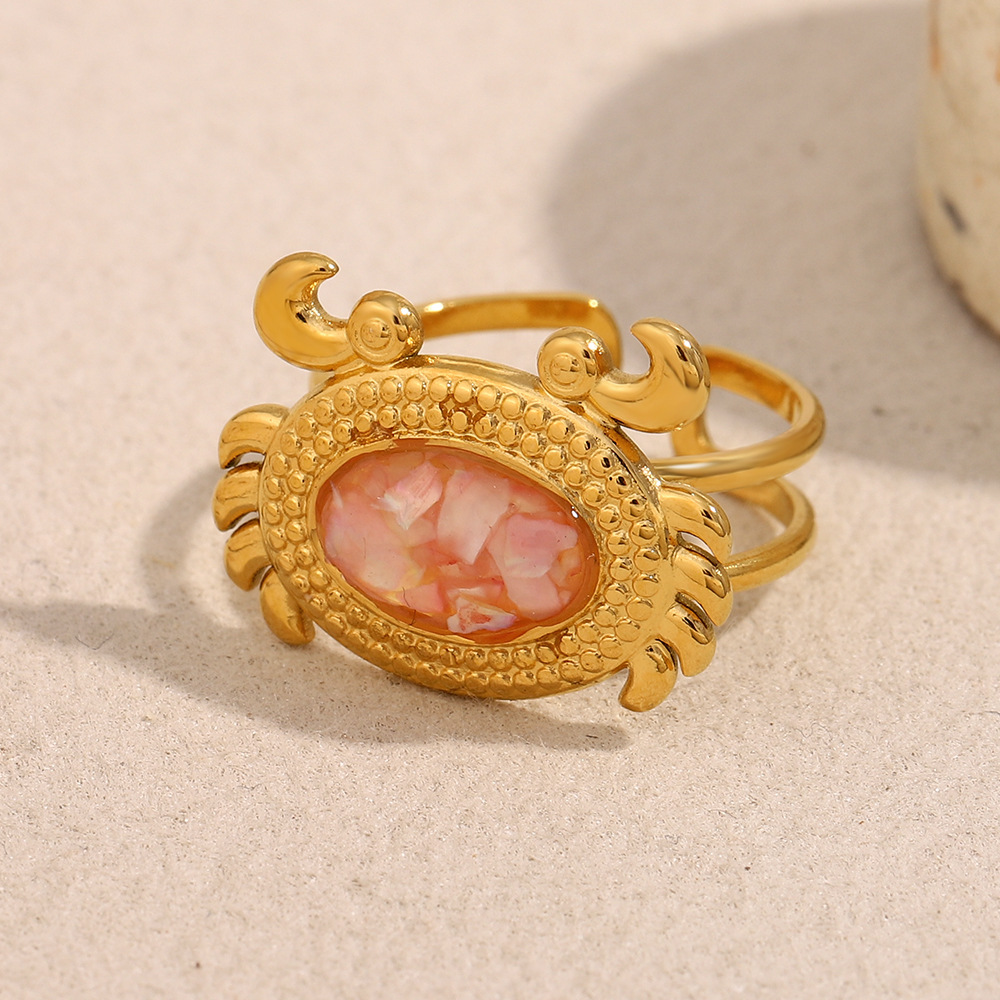 Personalized Niche Stainless Steel Plated 18K Gold Crab Oil Broken Shell Open Ring For Women