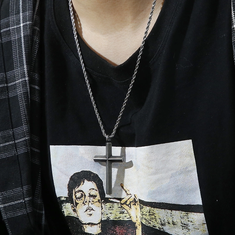 Punk Cross Titanium Steel Plating 18K Gold Plated Men'S Necklace