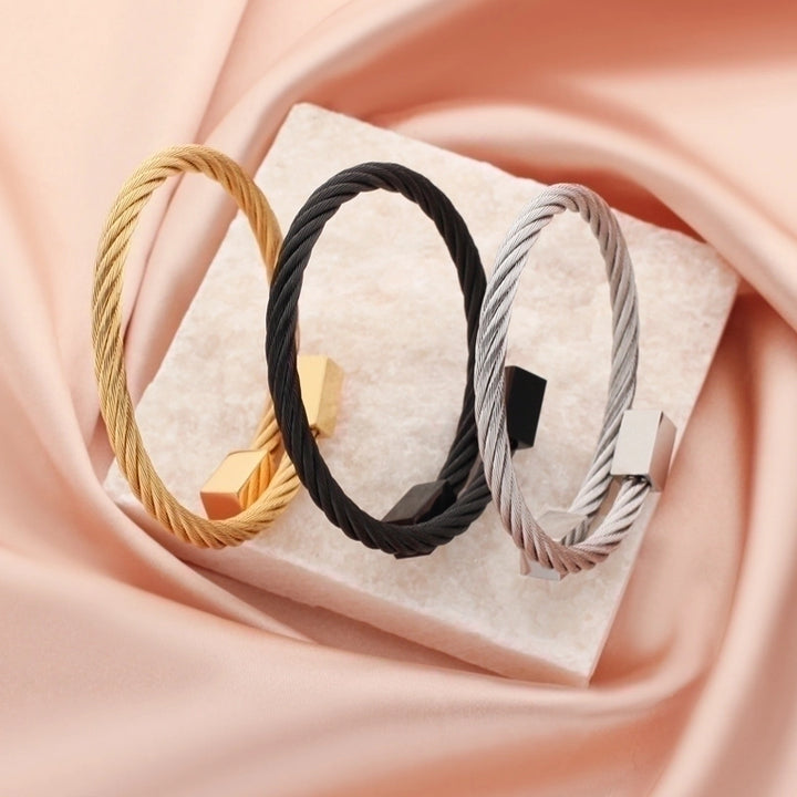 Punk Solid Color Stainless Steel Plating Cuff Bracelets