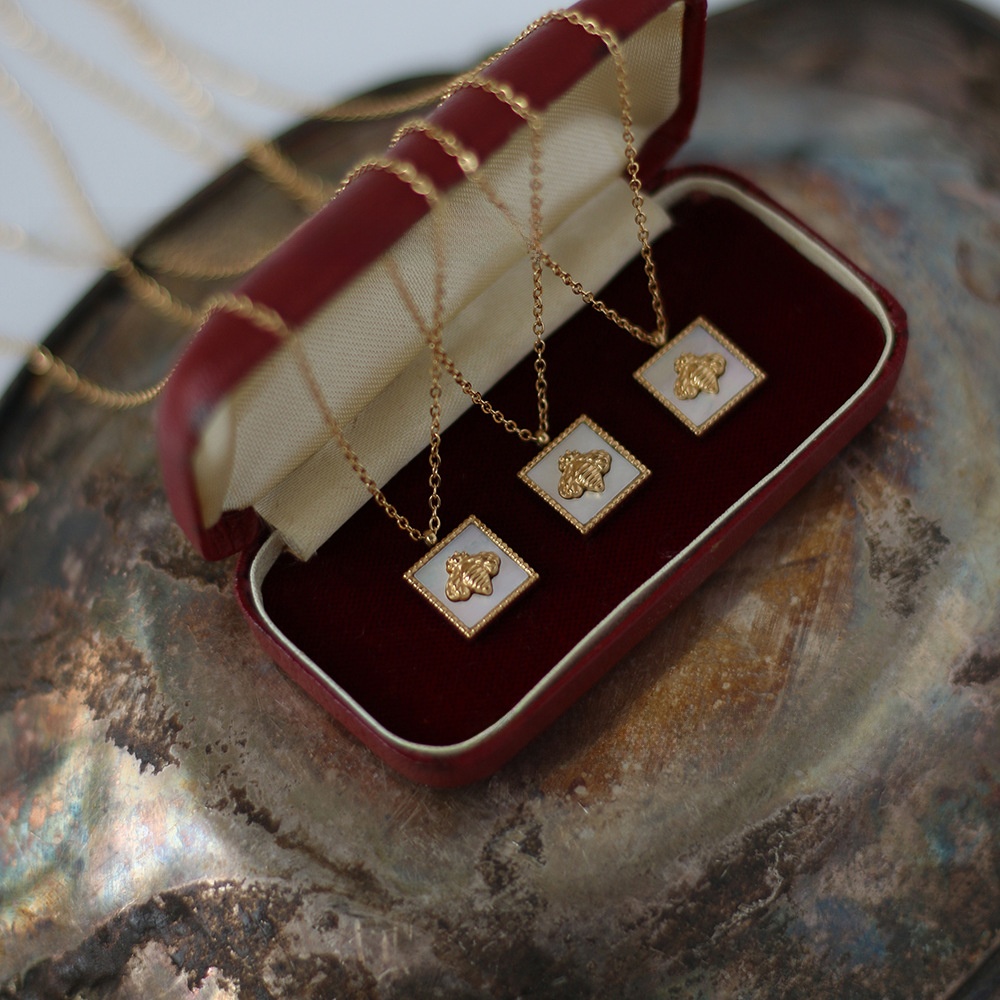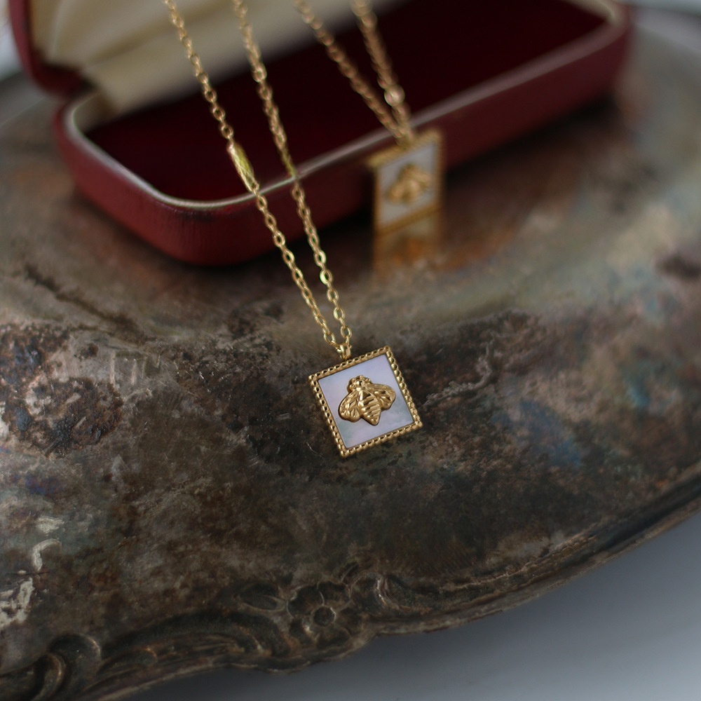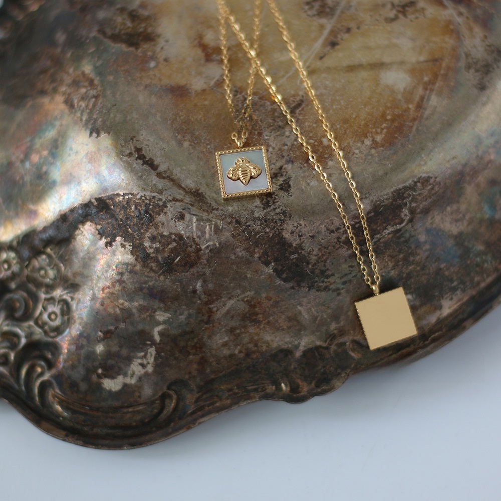 Retro 304 Stainless Steel Shell 18K Gold Plated Inlaid Shell Necklace