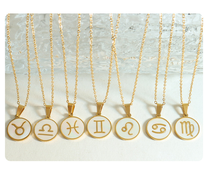 Retro Constellation 304 Stainless Steel Shell 18K Gold Plated Inlay Pendant Necklace