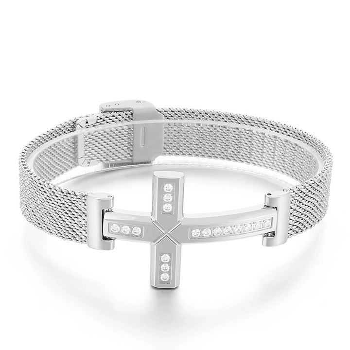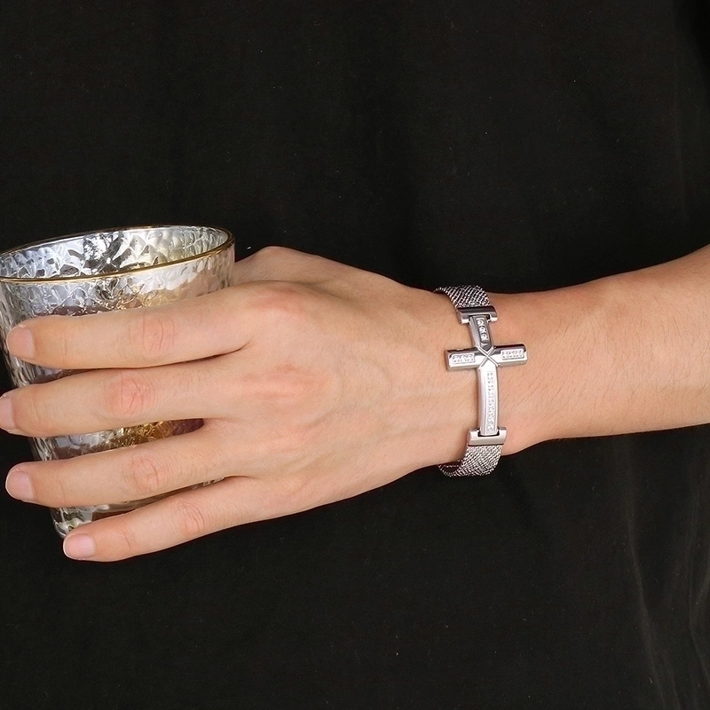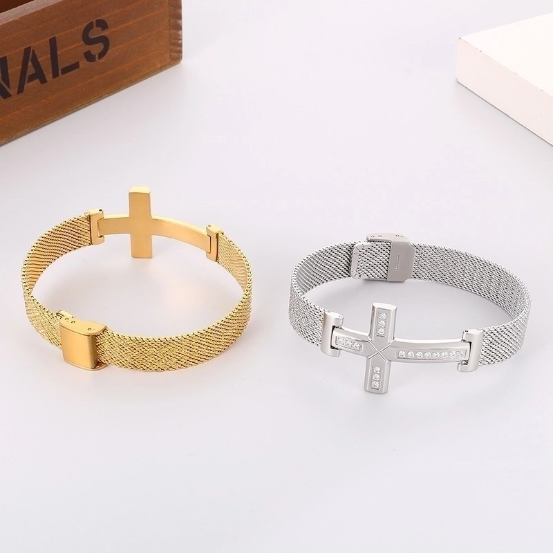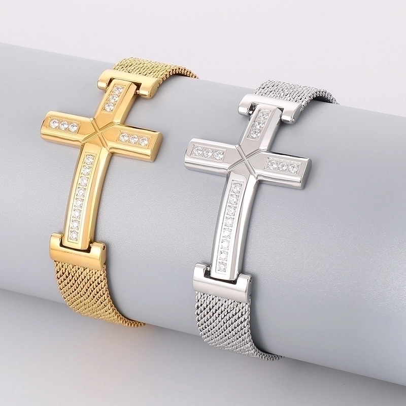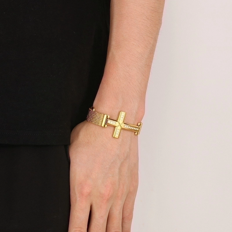 Retro Punk Cross Solid Color Titanium Steel Inlay Zircon 18K Gold Plated Men'S Bracelets