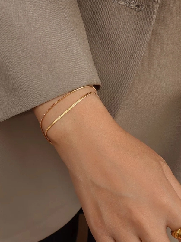 Retro Round Solid Color 304 Stainless Steel 18K Gold Plated Bracelets In Bulk