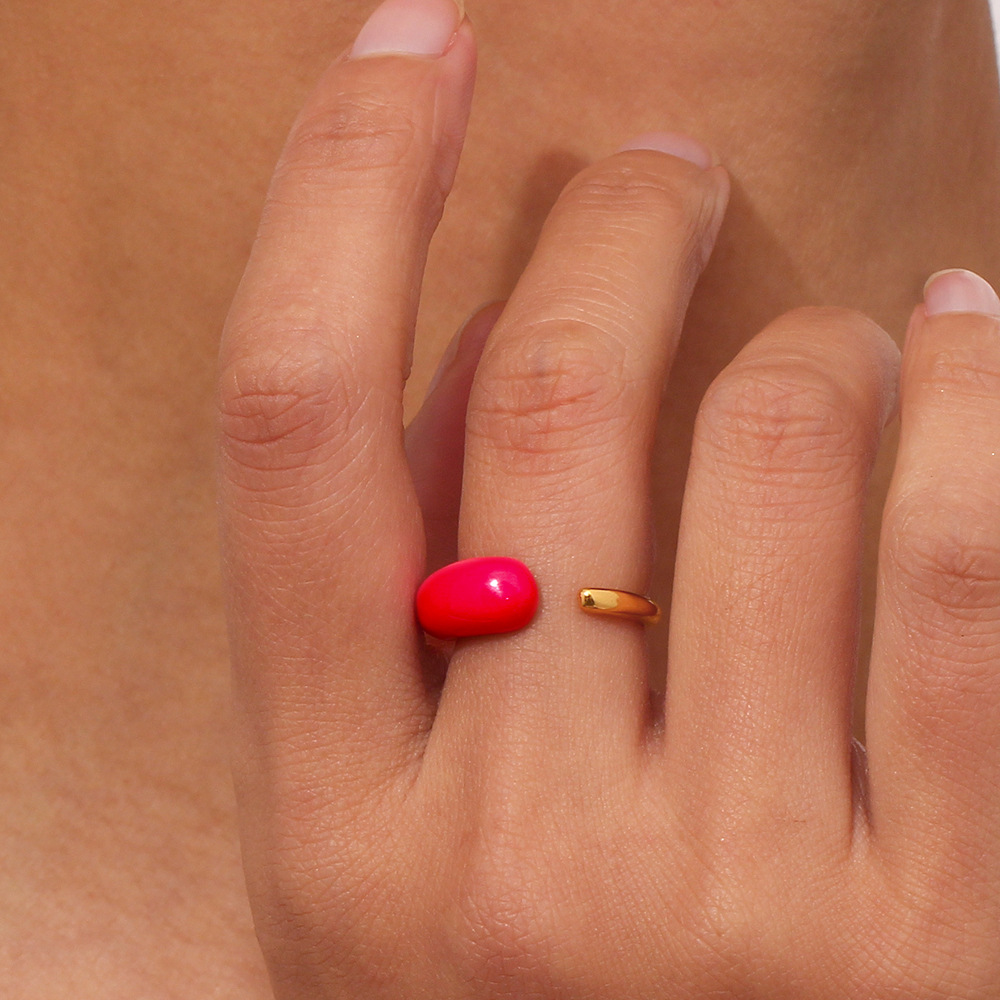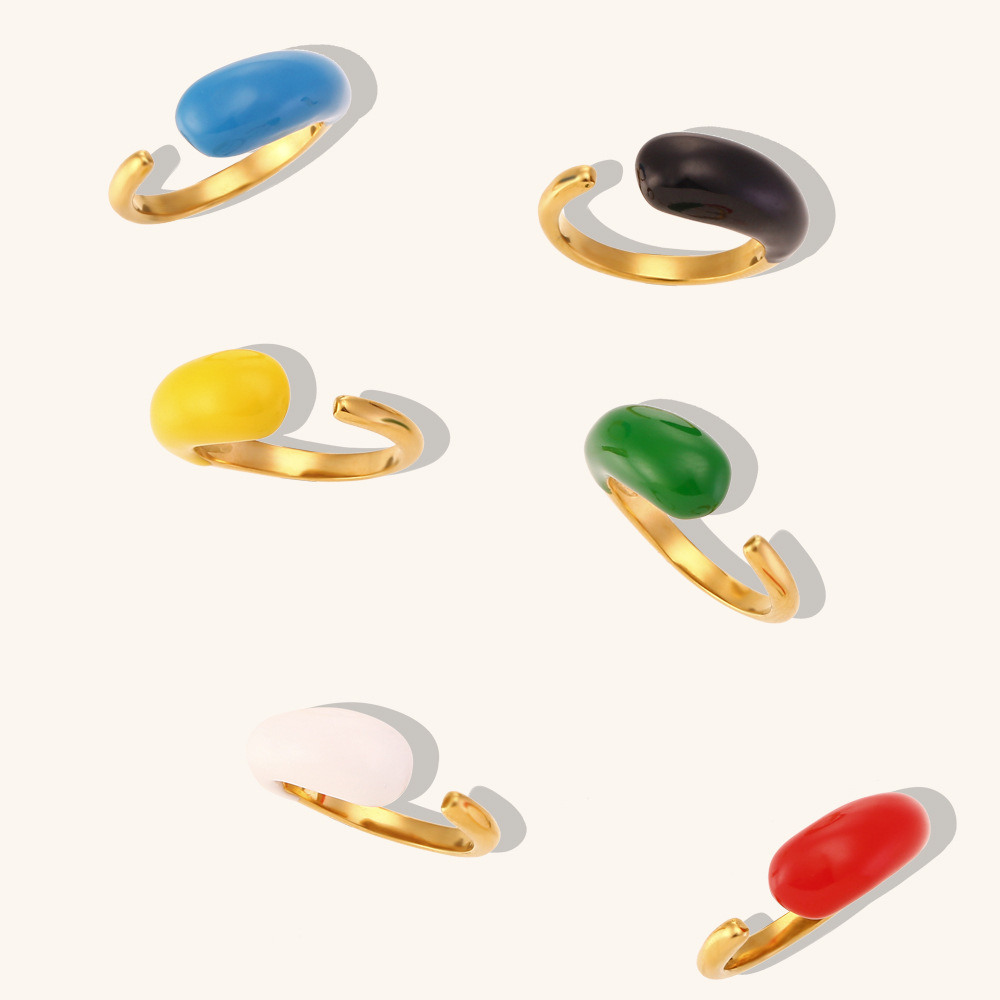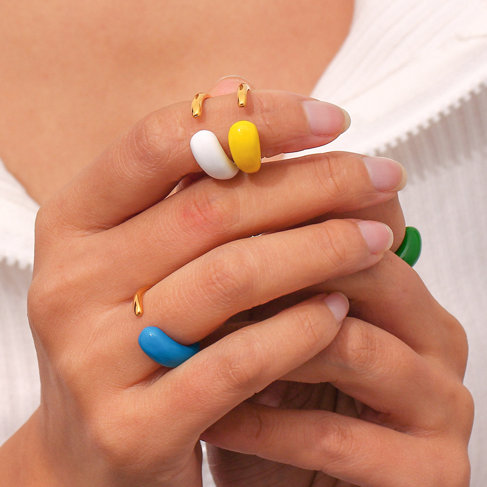 Retro Streetwear Geometric Stainless Steel Enamel Plating Open Rings